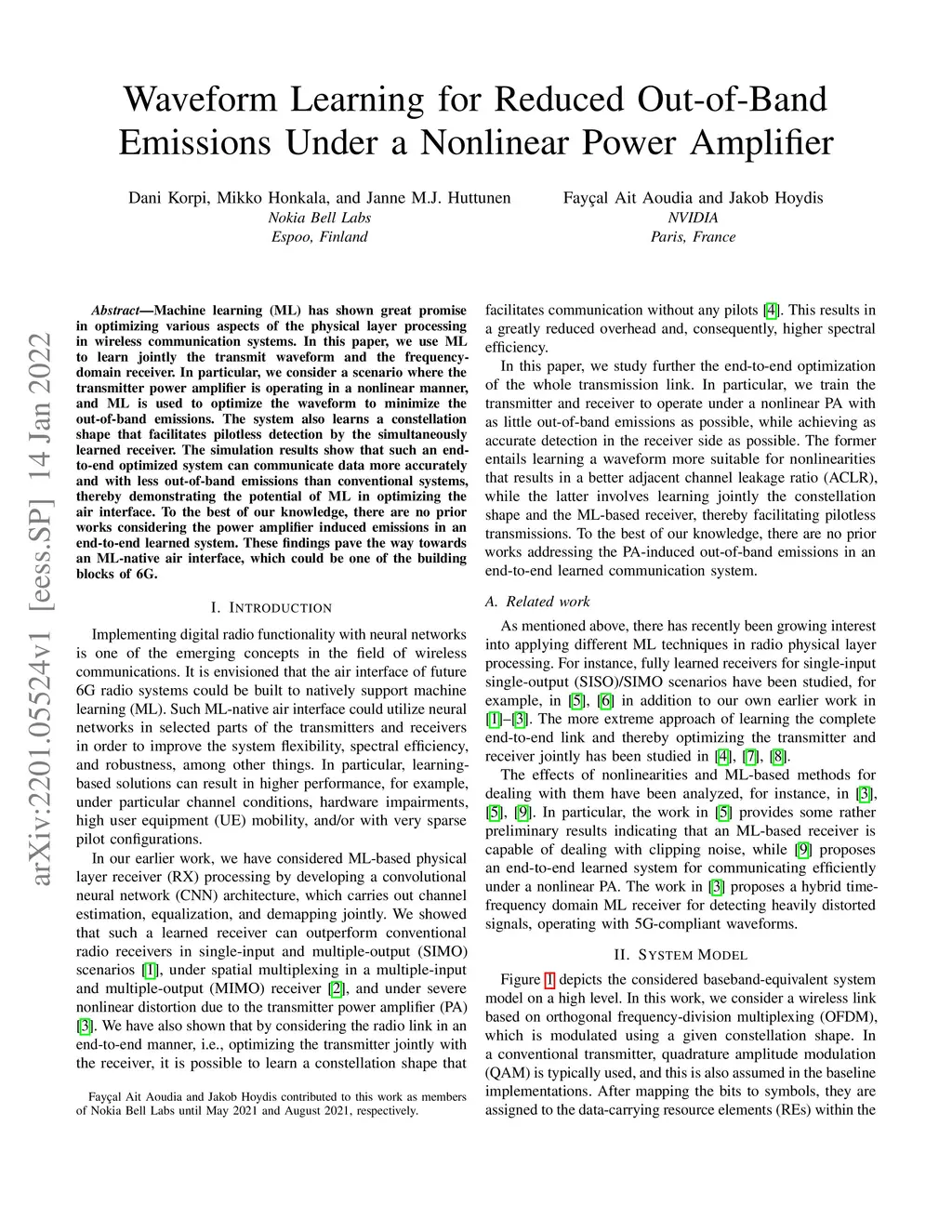 Waveform Learning for Reduced Out-of-Band Emissions Under a Nonlinear
