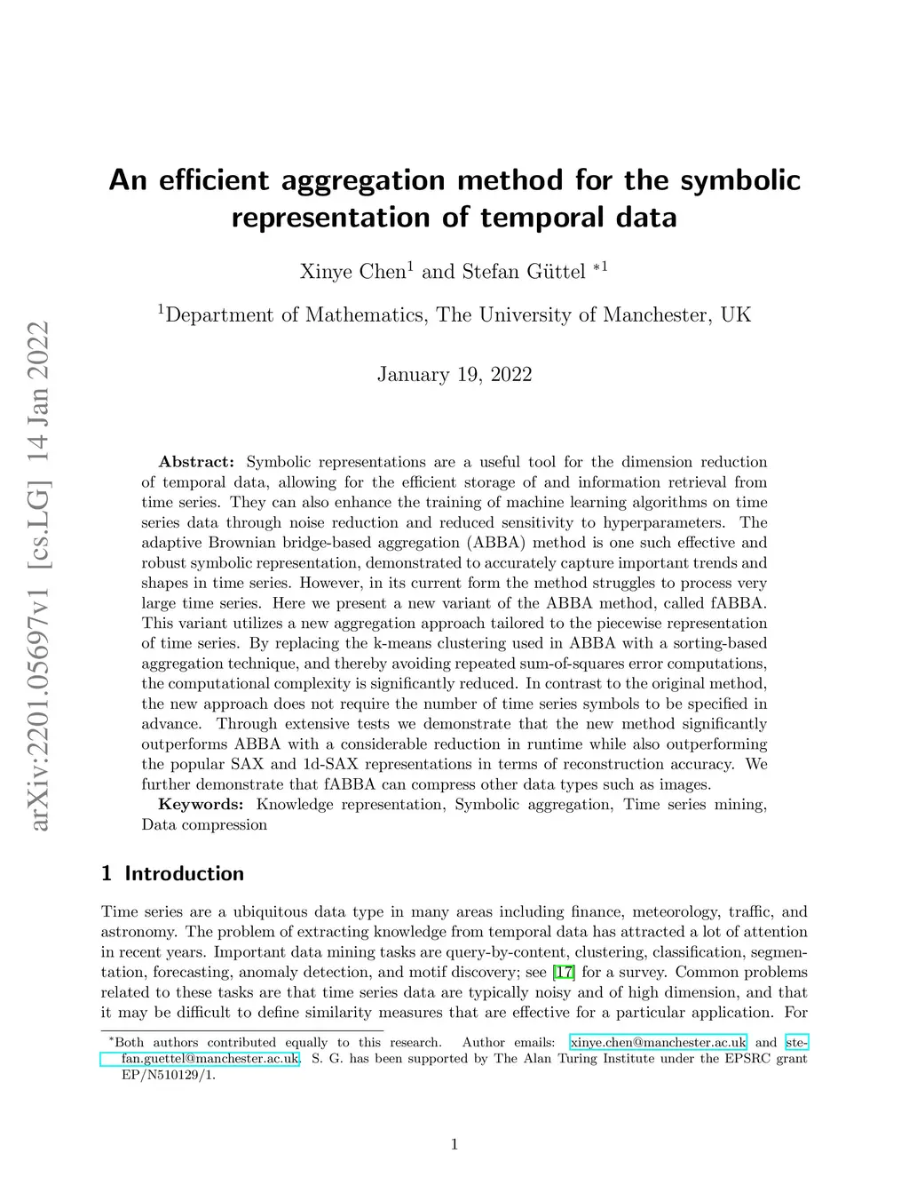 Symbolic representations are a useful tool for the dimension reduction of temporal data, allowing for the efficient storage of and information retrieval from time series. They can also enhance the training of machine learning algorithms on time series data through noise reduction and reduced sensitivity to hyperparameters. The adaptive Brownian bridge-based aggregation (ABBA) method is one such effective and robust symbolic representation, demonstrated to accurately capture important trends and shapes in time series. However, in its current form the method struggles to process very large time series. Here we present a new variant of the ABBA method, called fABBA. This variant utilizes a new aggregation approach tailored to the piecewise representation of time series. By replacing the k-means clustering used in ABBA with a sorting-based aggregation technique, and thereby avoiding repeated sum-of-squares error computations, the computational complexity is significantly reduced. In contrast to the original method, the new approach does not require the number of time series symbols to be specified in advance. Through extensive tests we demonstrate that the new method significantly outperforms ABBA with a considerable reduction in runtime while also outperforming the popular SAX and 1d-SAX representations in terms of reconstruction accuracy. We further demonstrate that fABBA can compress other data types such as images.