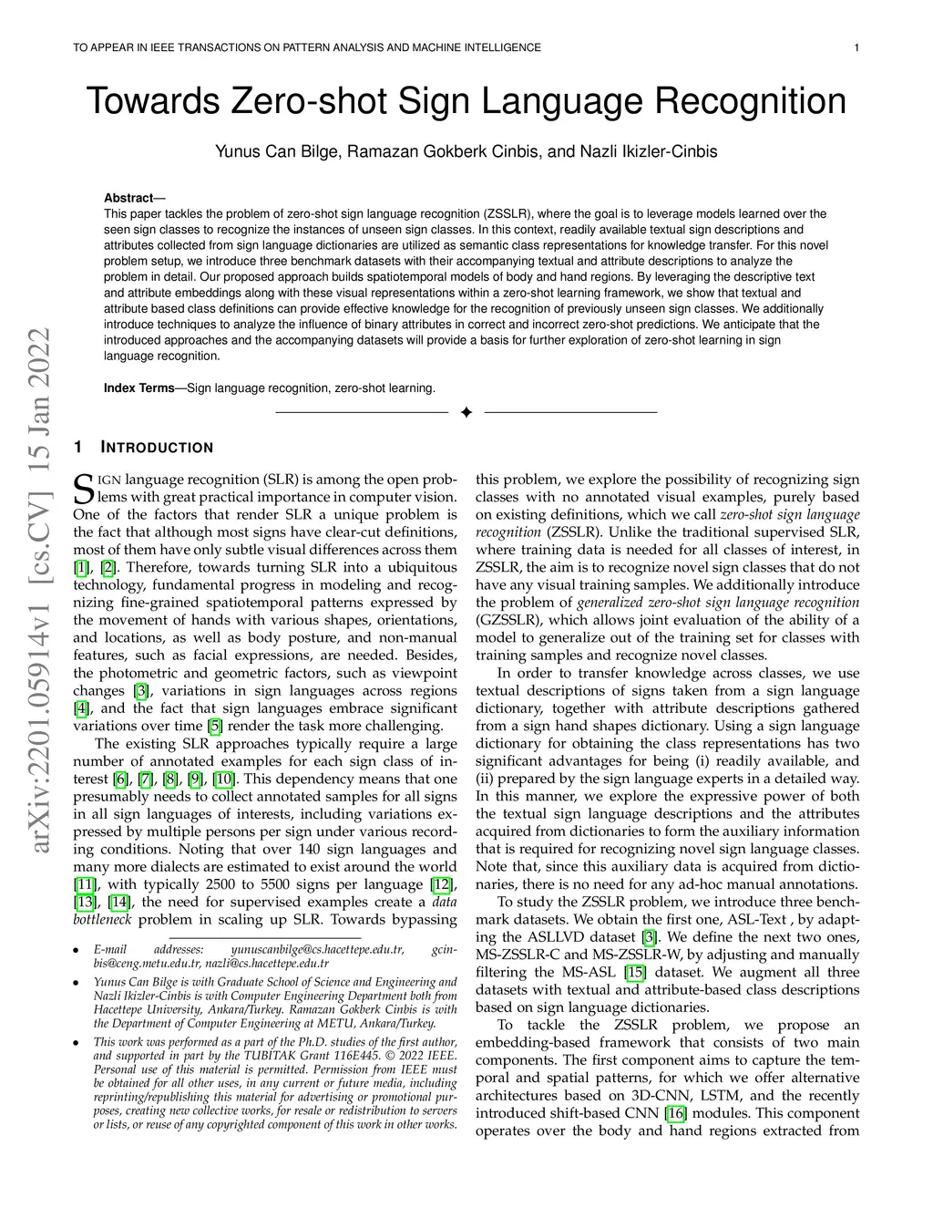 This paper tackles the problem of zero-shot sign language recognition (ZSSLR), where the goal is to leverage models learned over the seen sign classes to recognize the instances of unseen sign classes. In this context, readily available textual sign descriptions and attributes collected from sign language dictionaries are utilized as semantic class representations for knowledge transfer. For this novel problem setup, we introduce three benchmark datasets with their accompanying textual and attribute descriptions to analyze the problem in detail. Our proposed approach builds spatiotemporal models of body and hand regions. By leveraging the descriptive text and attribute embeddings along with these visual representations within a zero-shot learning framework, we show that textual and attribute based class definitions can provide effective knowledge for the recognition of previously unseen sign classes. We additionally introduce techniques to analyze the influence of binary attributes in correct and incorrect zero-shot predictions. We anticipate that the introduced approaches and the accompanying datasets will provide a basis for further exploration of zero-shot learning in sign language recognition.