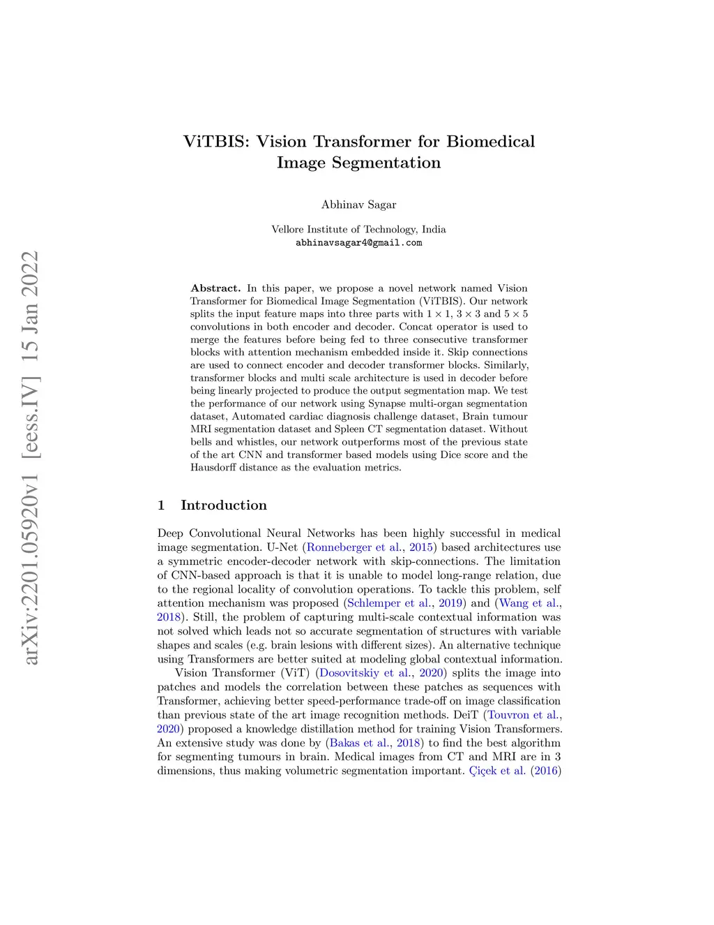 ViTBIS: Vision Transformer for Biomedical Image Segmentation