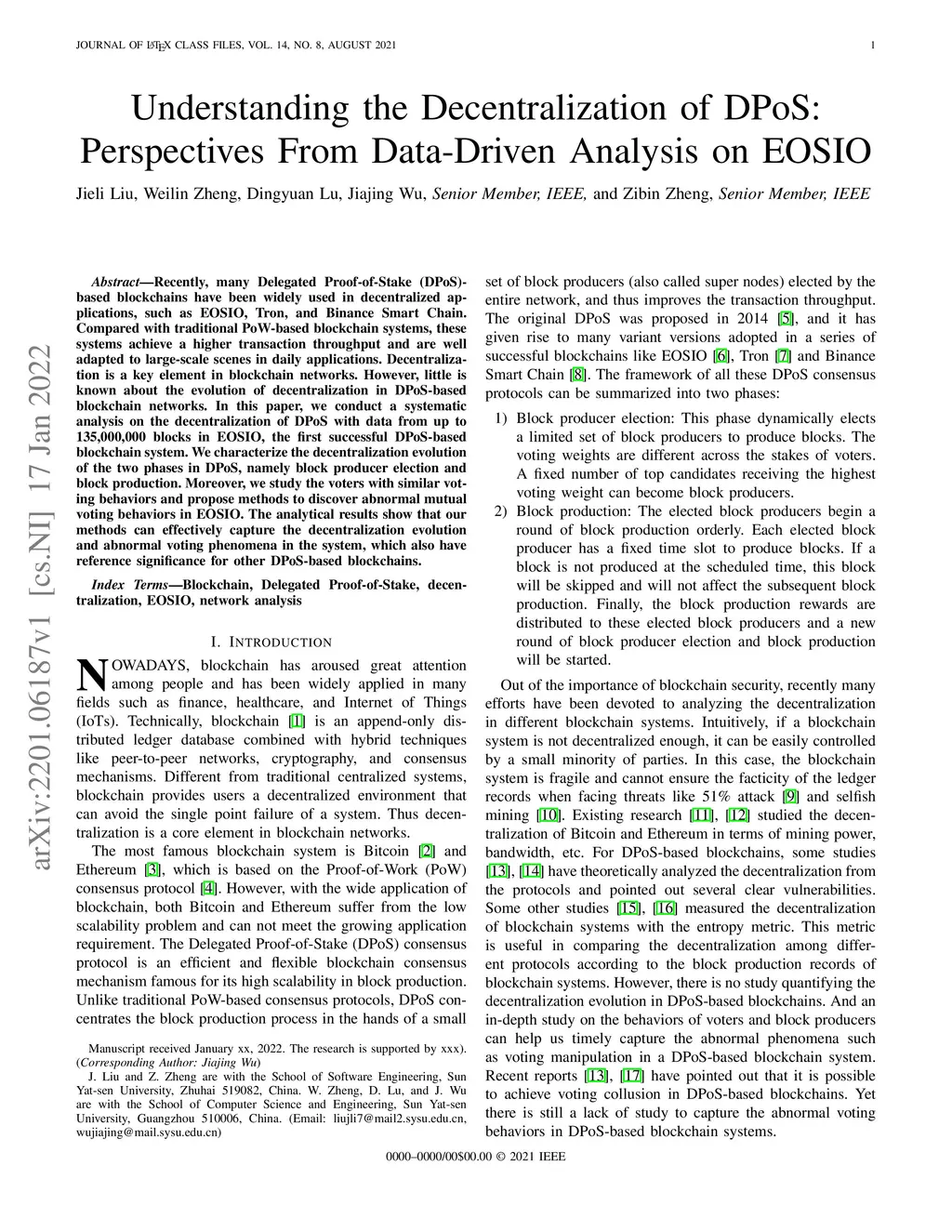 Recently, many Delegated Proof-of-Stake (DPoS)-based blockchains have been widely used in decentralized applications, such as EOSIO, Tron, and Binance Smart Chain. Compared with traditional PoW-based blockchain systems, these systems achieve a higher transaction throughput and are well adapted to large-scale scenes in daily applications. Decentralization is a key element in blockchain networks. However, little is known about the evolution of decentralization in DPoS-based blockchain networks. In this paper, we conduct a systematic analysis on the decentralization of DPoS with data from up to 135,000,000 blocks in EOSIO, the first successful DPoS-based blockchain system. We characterize the decentralization evolution of the two phases in DPoS, namely block producer election and block production. Moreover, we study the voters with similar voting behaviors and propose methods to discover abnormal mutual voting behaviors in EOSIO. The analytical results show that our methods can effectively capture the decentralization evolution and abnormal voting phenomena in the system, which also have reference significance for other DPoS-based blockchains.