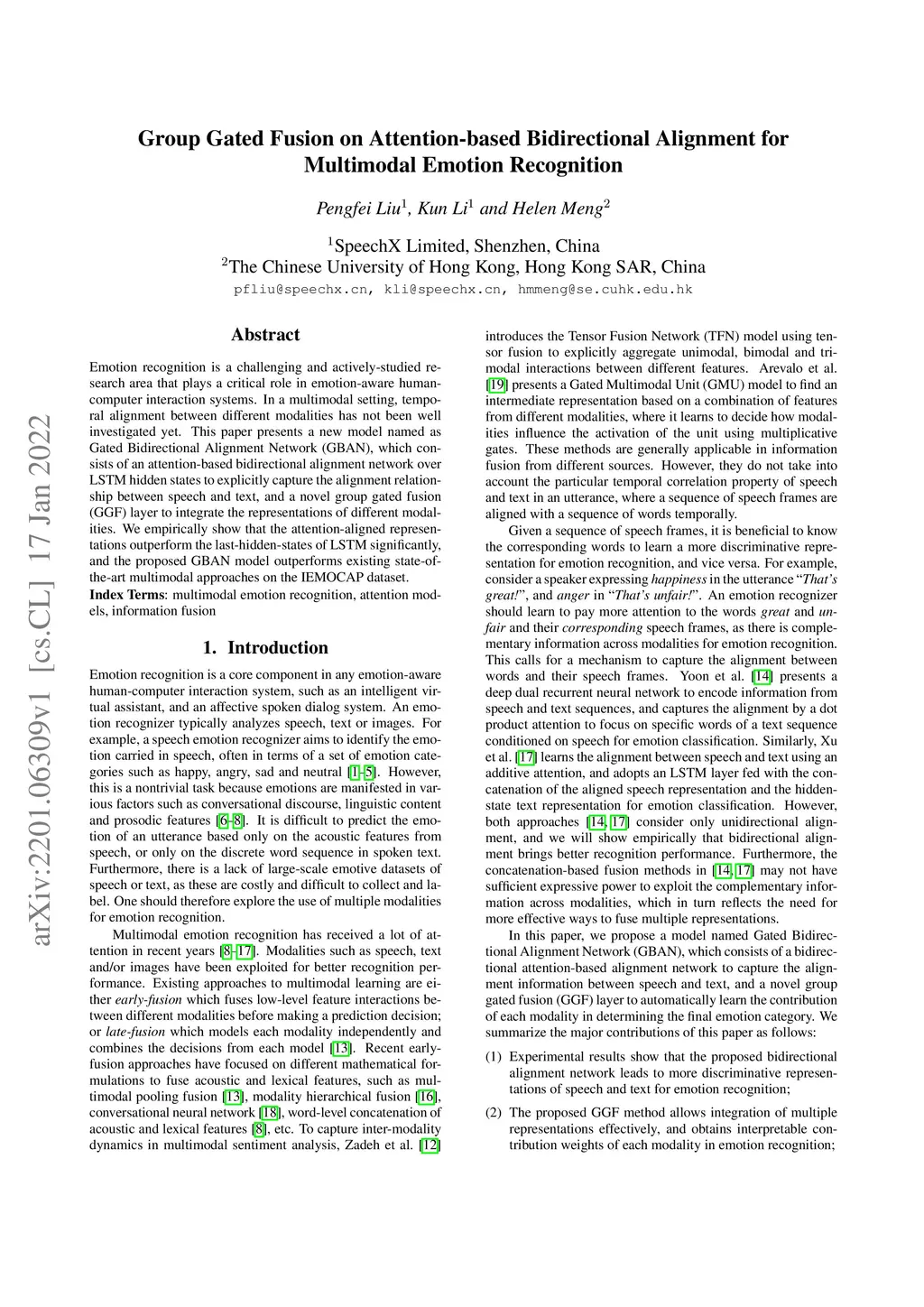 Emotion recognition is a challenging and actively-studied research area that plays a critical role in emotion-aware human-computer interaction systems. In a multimodal setting, temporal alignment between different modalities has not been well investigated yet. This paper presents a new model named as Gated Bidirectional Alignment Network (GBAN), which consists of an attention-based bidirectional alignment network over LSTM hidden states to explicitly capture the alignment relationship between speech and text, and a novel group gated fusion (GGF) layer to integrate the representations of different modalities. We empirically show that the attention-aligned representations outperform the last-hidden-states of LSTM significantly, and the proposed GBAN model outperforms existing state-of-the-art multimodal approaches on the IEMOCAP dataset.