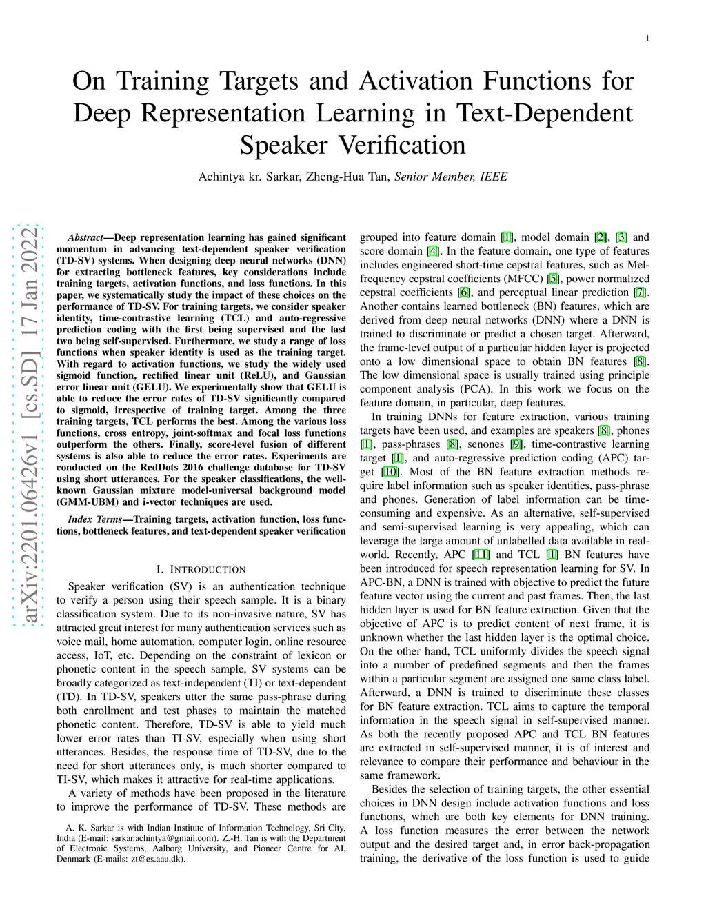 Deep representation learning has gained significant momentum in advancing text-dependent speaker verification (TD-SV) systems. When designing deep neural networks (DNN) for extracting bottleneck features, key considerations include training targets, activation functions, and loss functions. In this paper, we systematically study the impact of these choices on the performance of TD-SV. For training targets, we consider speaker identity, time-contrastive learning (TCL) and auto-regressive prediction coding with the first being supervised and the last two being self-supervised. Furthermore, we study a range of loss functions when speaker identity is used as the training target. With regard to activation functions, we study the widely used sigmoid function, rectified linear unit (ReLU), and Gaussian error linear unit (GELU). We experimentally show that GELU is able to reduce the error rates of TD-SV significantly compared to sigmoid, irrespective of training target. Among the three training targets, TCL performs the best. Among the various loss functions, cross entropy, joint-softmax and focal loss functions outperform the others. Finally, score-level fusion of different systems is also able to reduce the error rates. Experiments are conducted on the RedDots 2016 challenge database for TD-SV using short utterances. For the speaker classifications, the well-known Gaussian mixture model-universal background model (GMM-UBM) and i-vector techniques are used.