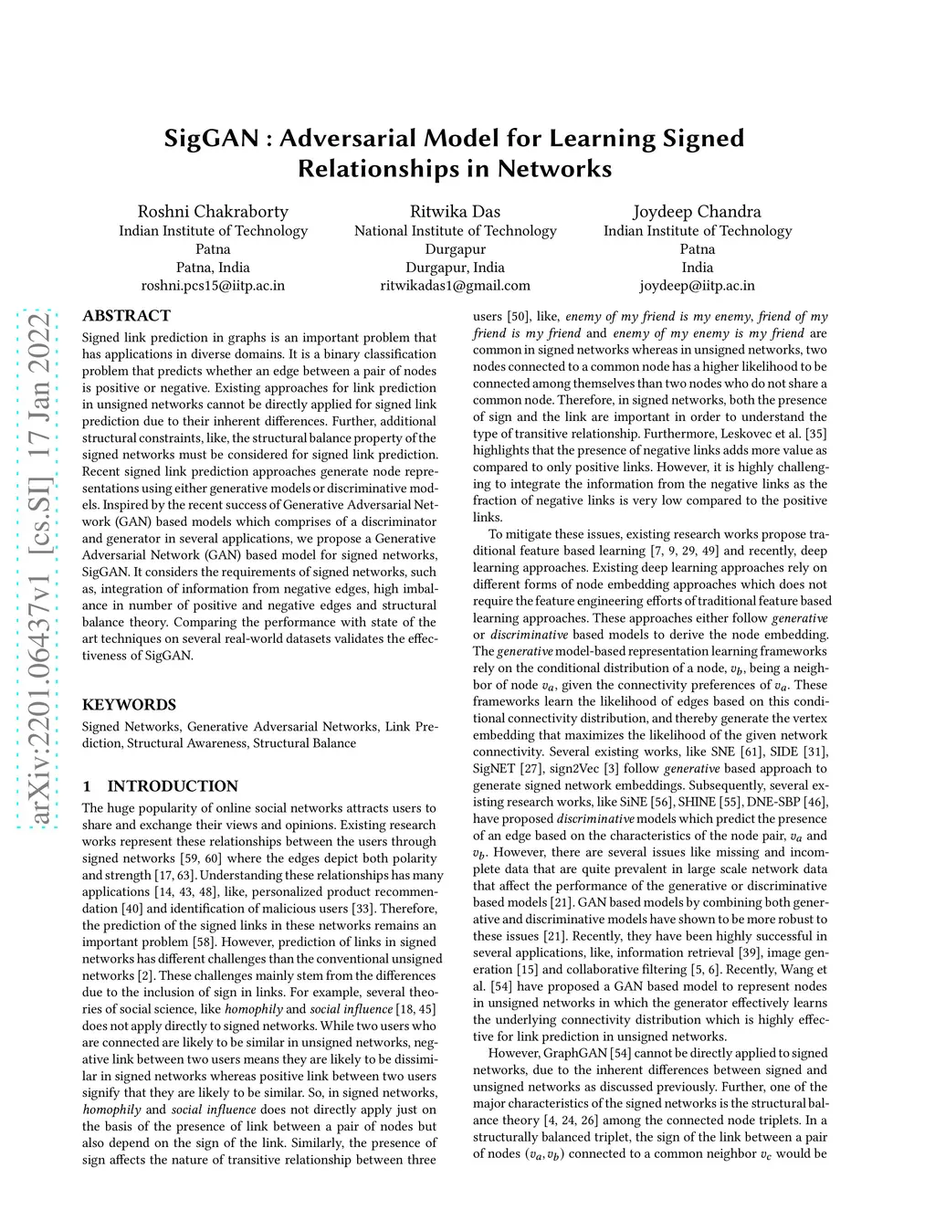 SigGAN : Adversarial Model for Learning Signed Relationships in Networks