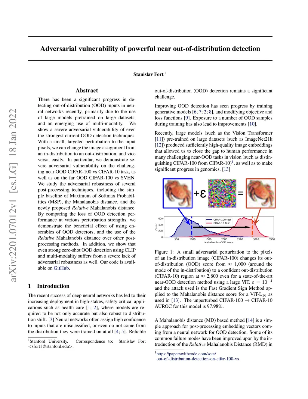 Adversarial vulnerability of powerful near out-of-distribution detection