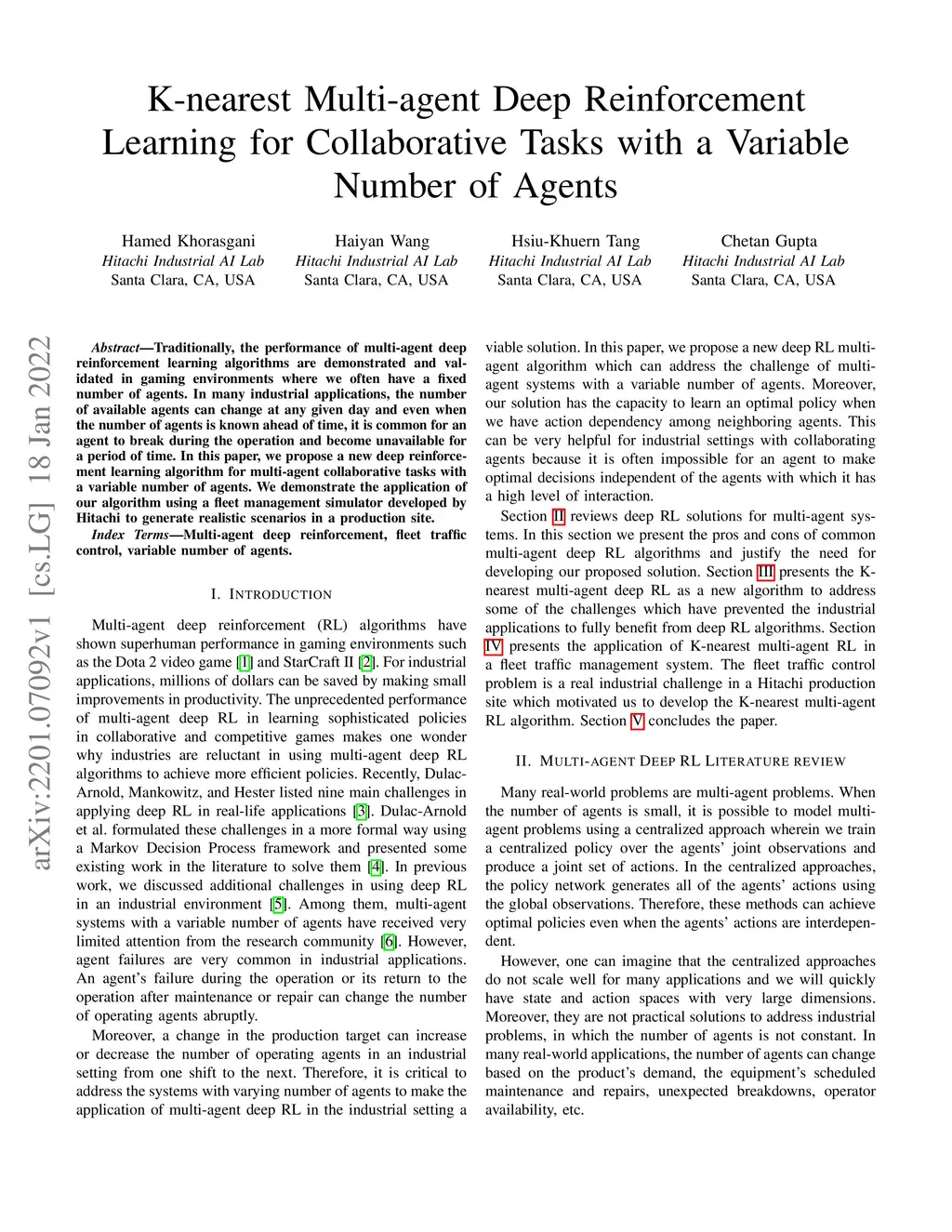 Traditionally, the performance of multi-agent deep reinforcement learning algorithms are demonstrated and validated in gaming environments where we often have a fixed number of agents. In many industrial applications, the number of available agents can change at any given day and even when the number of agents is known ahead of time, it is common for an agent to break during the operation and become unavailable for a period of time. In this paper, we propose a new deep reinforcement learning algorithm for multi-agent collaborative tasks with a variable number of agents. We demonstrate the application of our algorithm using a fleet management simulator developed by Hitachi to generate realistic scenarios in a production site.
