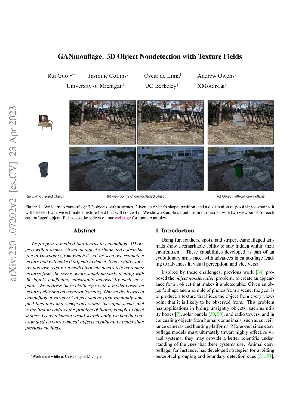 GANmouflage: 3D Object Nondetection with Texture Fields