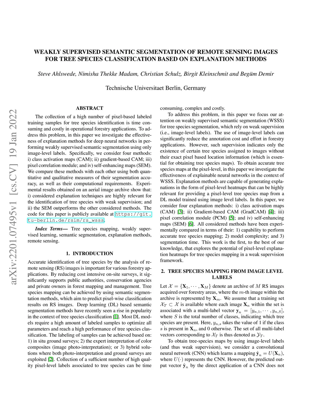 The collection of a high number of pixel-based labeled training samples for tree species identification is time consuming and costly in operational forestry applications. To address this problem, in this paper we investigate the effectiveness of explanation methods for deep neural networks in performing weakly supervised semantic segmentation using only image-level labels. Specifically, we consider four methods:i) class activation maps (CAM); ii) gradient-based CAM; iii) pixel correlation module; and iv) self-enhancing maps (SEM). We compare these methods with each other using both quantitative and qualitative measures of their segmentation accuracy, as well as their computational requirements. Experimental results obtained on an aerial image archive show that:i) considered explanation techniques are highly relevant for the identification of tree species with weak supervision; and ii) the SEM outperforms the other considered methods. The code for this paper is publicly available at https://git.tu-berlin.de/rsim/rs_wsss.