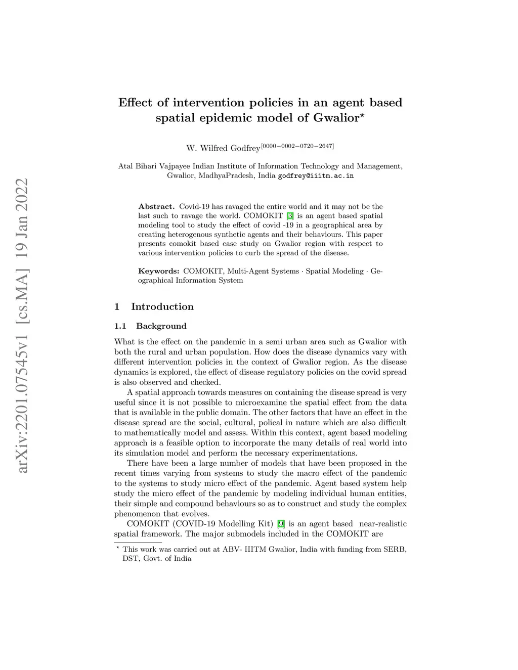 Covid-19 has ravaged the entire world and it may not be the last such to ravage the world. COMOKIT [3] is an agent based spatial modeling tool to study the effect of covid -19 in a geographical area by creating heterogenous synthetic agents and their behaviours. This paper presents comokit based case study on Gwalior region with respect to various intervention policies to curb the spread of the disease.