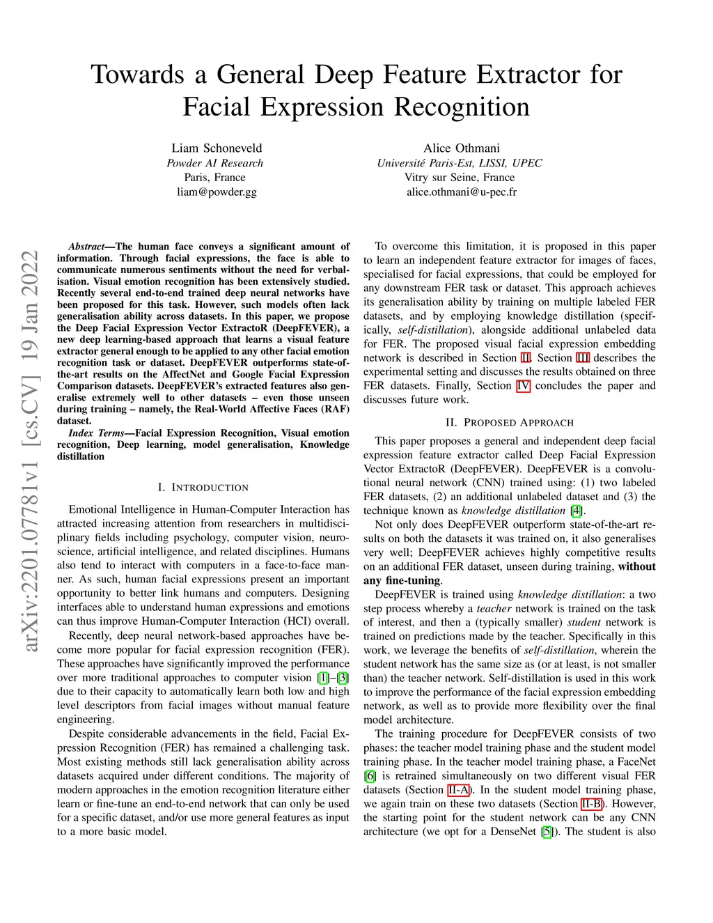 The human face conveys a significant amount of information. Through facial expressions, the face is able to communicate numerous sentiments without the need for verbalisation. Visual emotion recognition has been extensively studied. Recently several end-to-end trained deep neural networks have been proposed for this task. However, such models often lack generalisation ability across datasets. In this paper, we propose the Deep Facial Expression Vector ExtractoR (DeepFEVER), a new deep learning-based approach that learns a visual feature extractor general enough to be applied to any other facial emotion recognition task or dataset. DeepFEVER outperforms state-of-the-art results on the AffectNet and Google Facial Expression Comparison datasets. DeepFEVER's extracted features also generalise extremely well to other datasets -- even those unseen during training -- namely, the Real-World Affective Faces (RAF) dataset.
