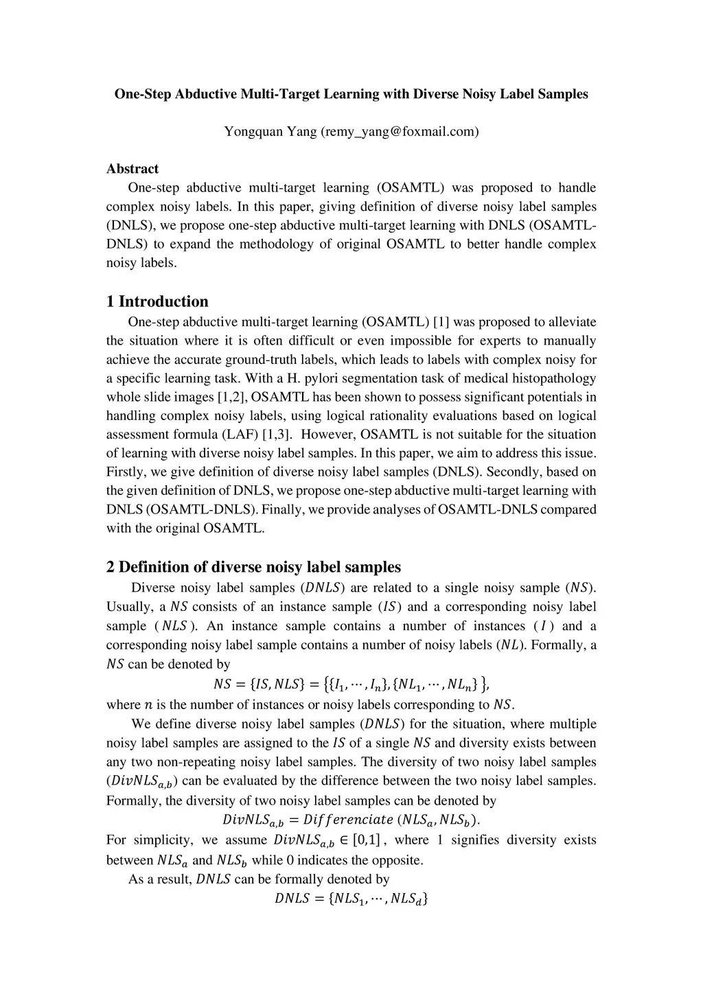 One-step abductive multi-target learning (OSAMTL) was proposed to handle complex noisy labels. In this paper, giving definition of diverse noisy label samples (DNLS), we propose one-step abductive multi-target learning with DNLS (OSAMTL-DNLS) to expand the methodology of original OSAMTL to better handle complex noisy labels.