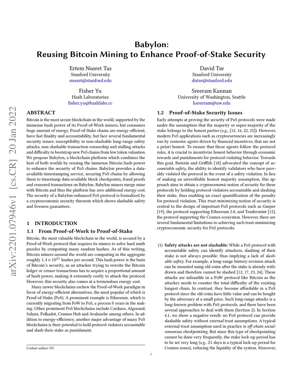 Babylon: Reusing Bitcoin Mining to Enhance Proof-of-Stake Security