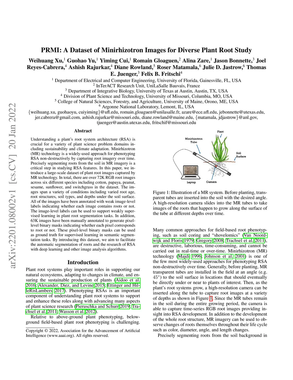 PRMI: A Dataset of Minirhizotron Images for Diverse Plant Root Study