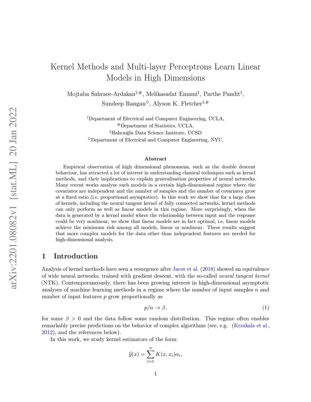 Kernel Methods and Multi-layer Perceptrons Learn Linear Models in High