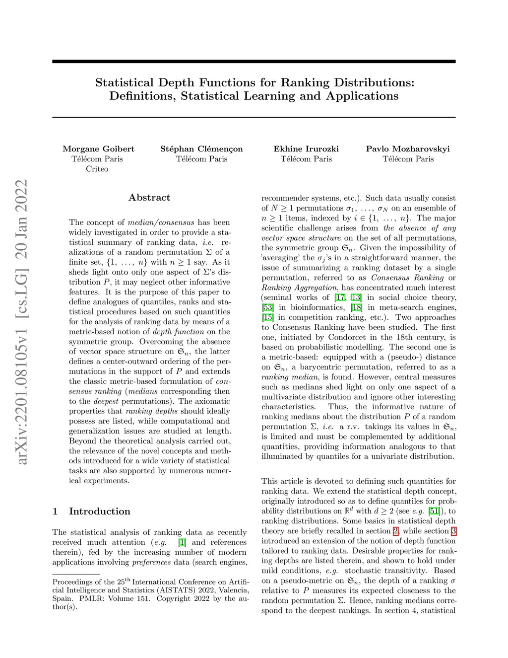 Statistical Depth Functions for Ranking Distributions: Definitions,