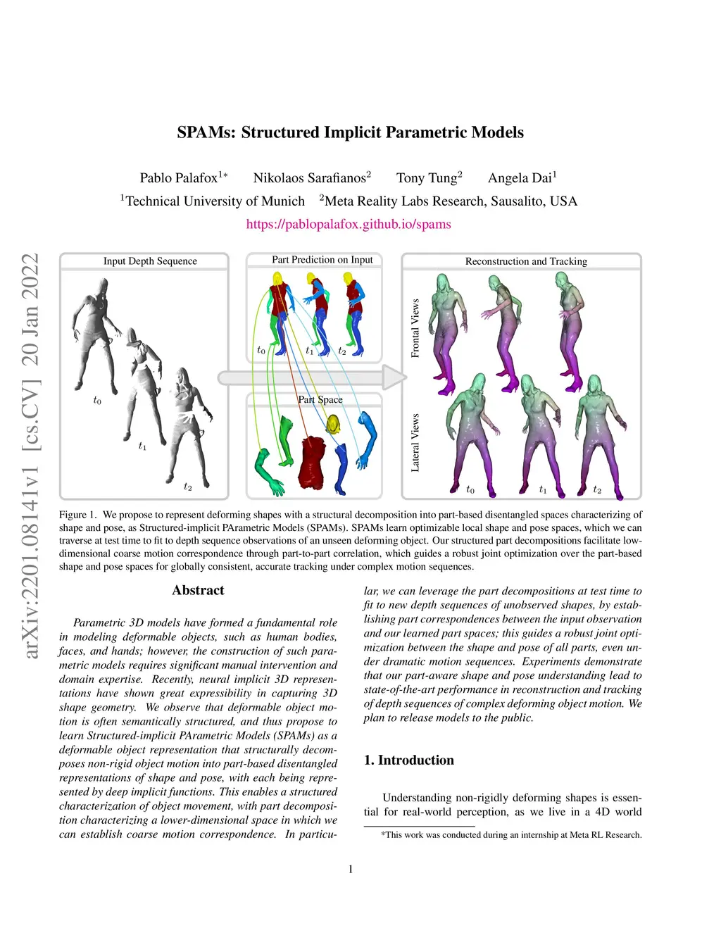 Parametric 3D models have formed a fundamental role in modeling deformable objects, such as human bodies, faces, and hands; however, the construction of such parametric models requires significant manual intervention and domain expertise. Recently, neural implicit 3D representations have shown great expressibility in capturing 3D shape geometry. We observe that deformable object motion is often semantically structured, and thus propose to learn Structured-implicit PArametric Models (SPAMs) as a deformable object representation that structurally decomposes non-rigid object motion into part-based disentangled representations of shape and pose, with each being represented by deep implicit functions. This enables a structured characterization of object movement, with part decomposition characterizing a lower-dimensional space in which we can establish coarse motion correspondence. In particular, we can leverage the part decompositions at test time to fit to new depth sequences of unobserved shapes, by establishing part correspondences between the input observation and our learned part spaces; this guides a robust joint optimization between the shape and pose of all parts, even under dramatic motion sequences. Experiments demonstrate that our part-aware shape and pose understanding lead to state-of-the-art performance in reconstruction and tracking of depth sequences of complex deforming object motion. We plan to release models to the public at https://pablopalafox.github.io/spams.