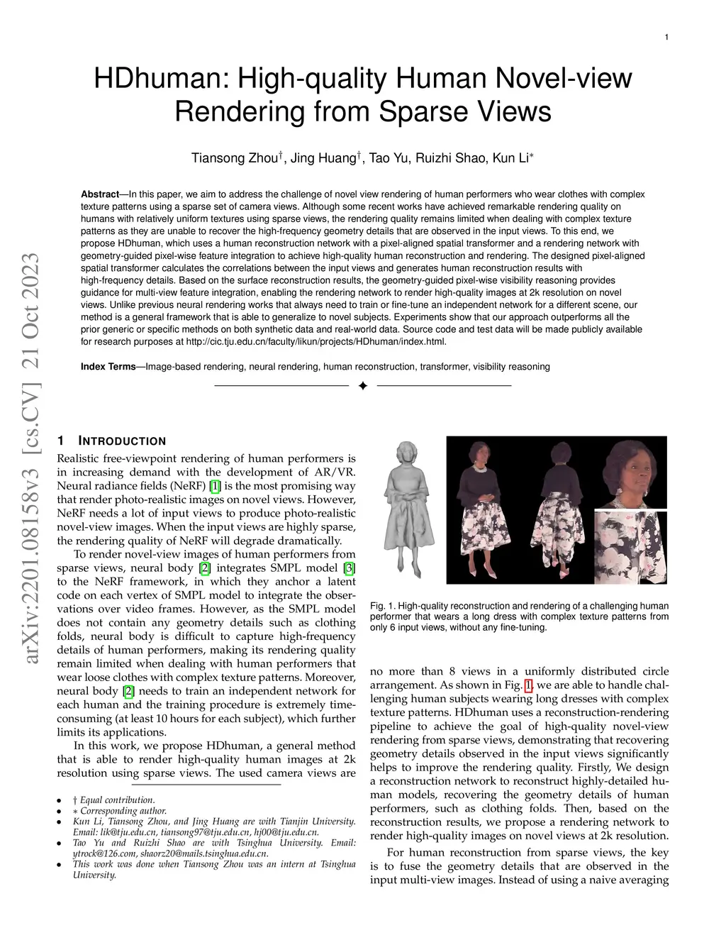 HDhuman: High-quality Human Novel-view Rendering from Sparse Views
