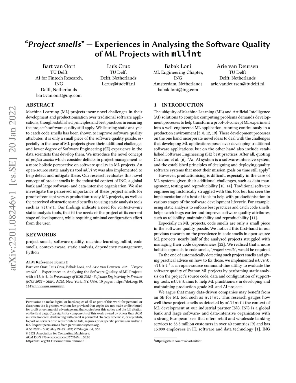 "Project smells" -- Experiences in Analysing the Software Quality of ML