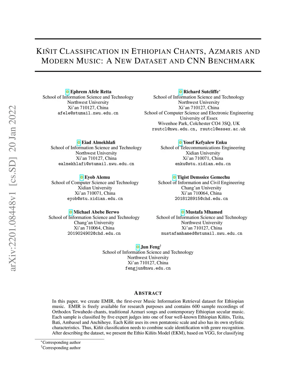 Kinit Classification in Ethiopian Chants, Azmaris and Modern Music: A