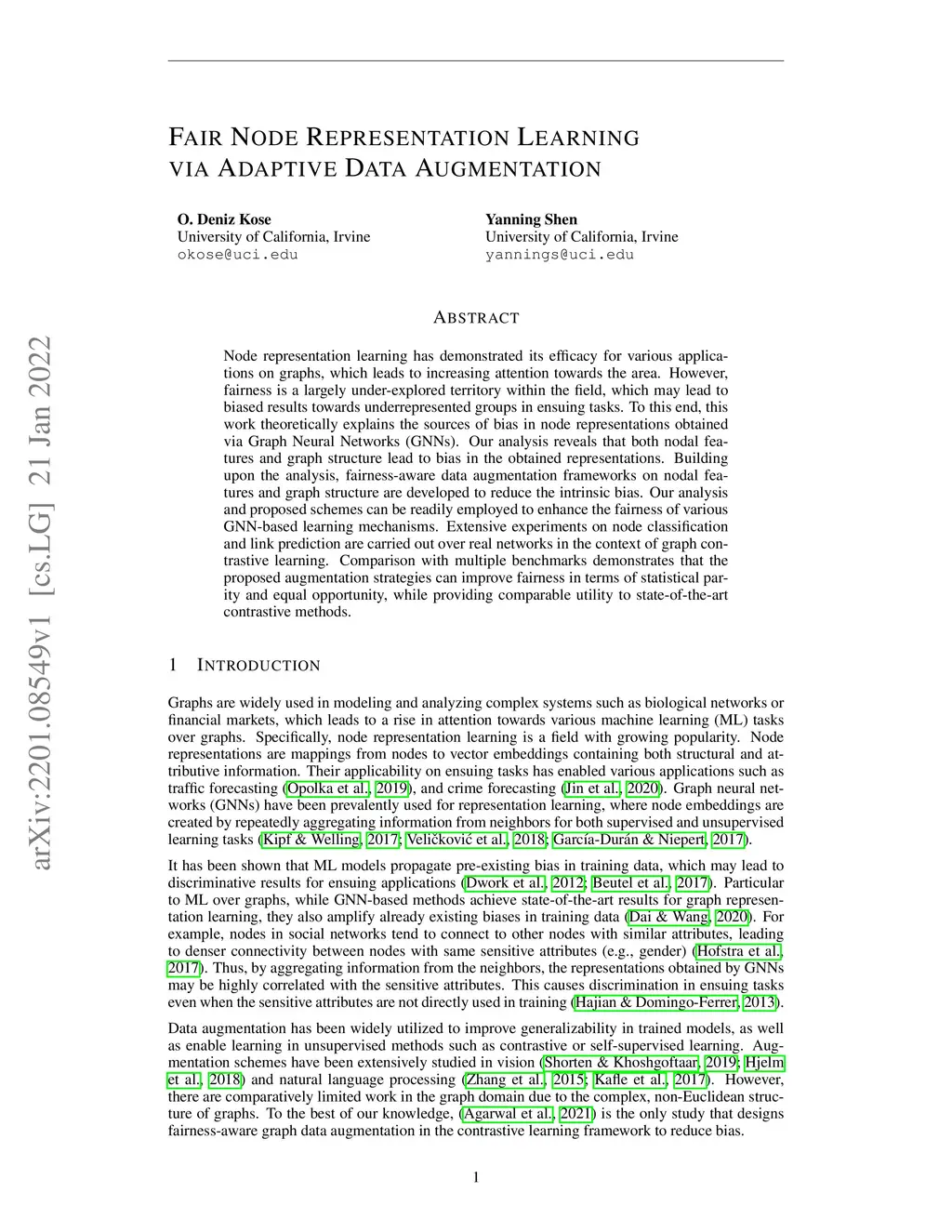 Fair Node Representation Learning via Adaptive Data Augmentation