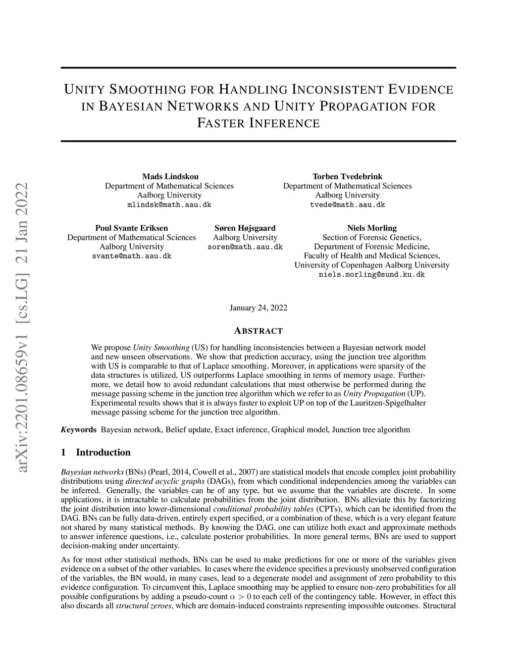 We propose Unity Smoothing (US) for handling inconsistencies between a Bayesian network model and new unseen observations. We show that prediction accuracy, using the junction tree algorithm with US is comparable to that of Laplace smoothing. Moreover, in applications were sparsity of the data structures is utilized, US outperforms Laplace smoothing in terms of memory usage. Furthermore, we detail how to avoid redundant calculations that must otherwise be performed during the message passing scheme in the junction tree algorithm which we refer to as Unity Propagation (UP). Experimental results shows that it is always faster to exploit UP on top of the Lauritzen-Spigelhalter message passing scheme for the junction tree algorithm.