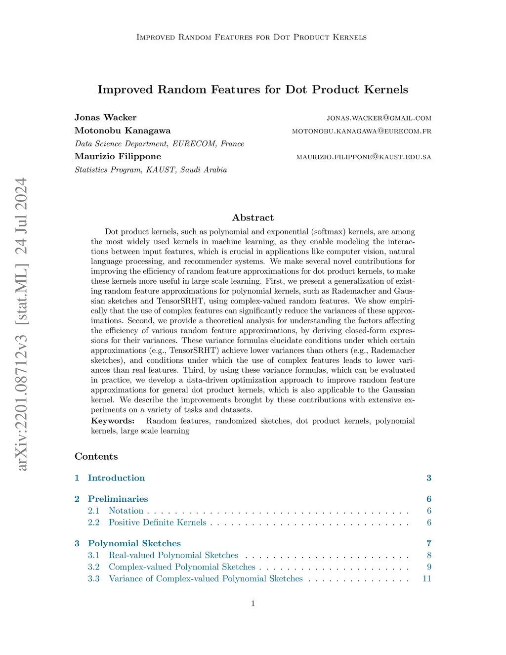 Improved Random Features for Dot Product Kernels
