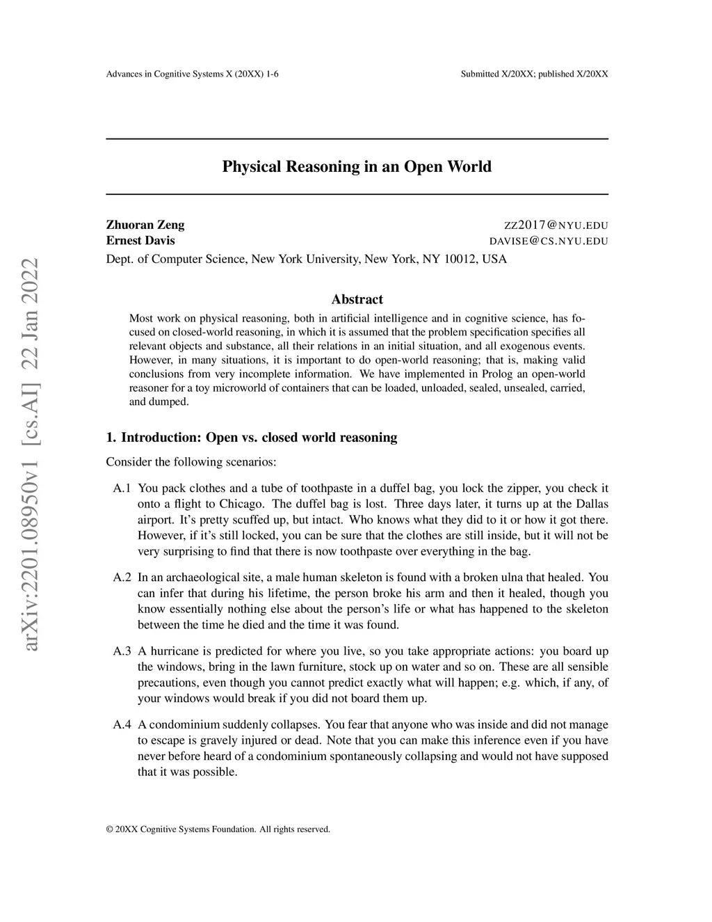 Most work on physical reasoning, both in artificial intelligence and in cognitive science, has focused on closed-world reasoning, in which it is assumed that the problem specification specifies all relevant objects and substance, all their relations in an initial situation, and all exogenous events. However, in many situations, it is important to do open-world reasoning; that is, making valid conclusions from very incomplete information. We have implemented in Prolog an open-world reasoner for a toy microworld of containers that can be loaded, unloaded, sealed, unsealed, carried, and dumped.