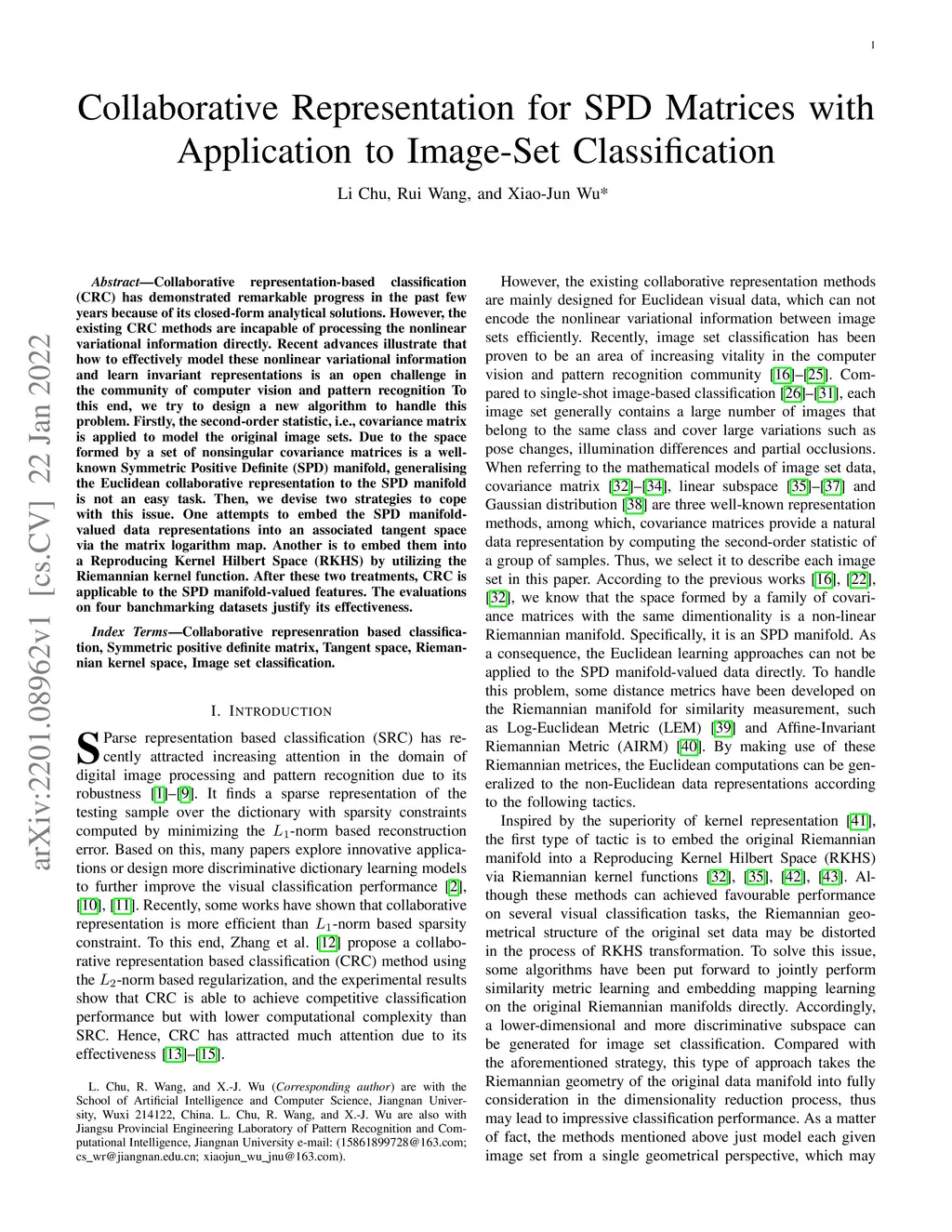 Collaborative representation-based classification (CRC) has demonstrated remarkable progress in the past few years because of its closed-form analytical solutions. However, the existing CRC methods are incapable of processing the nonlinear variational information directly. Recent advances illustrate that how to effectively model these nonlinear variational information and learn invariant representations is an open challenge in the community of computer vision and pattern recognition To this end, we try to design a new algorithm to handle this problem. Firstly, the second-order statistic, i.e., covariance matrix is applied to model the original image sets. Due to the space formed by a set of nonsingular covariance matrices is a well-known Symmetric Positive Definite (SPD) manifold, generalising the Euclidean collaborative representation to the SPD manifold is not an easy task. Then, we devise two strategies to cope with this issue. One attempts to embed the SPD manifold-valued data representations into an associated tangent space via the matrix logarithm map. Another is to embed them into a Reproducing Kernel Hilbert Space (RKHS) by utilizing the Riemannian kernel function. After these two treatments, CRC is applicable to the SPD manifold-valued features. The evaluations on four banchmarking datasets justify its effectiveness.