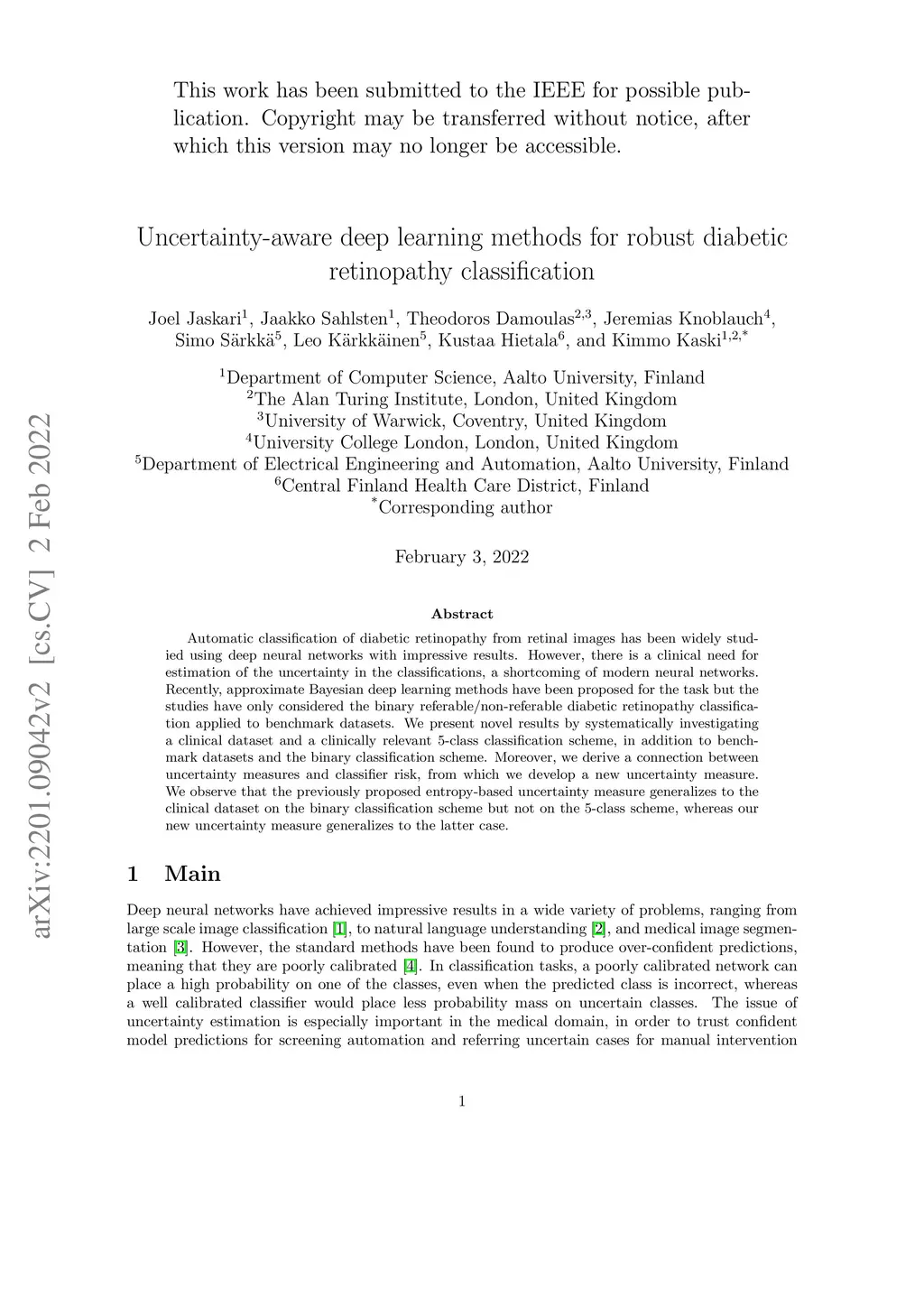 Uncertainty-aware deep learning methods for robust diabetic retinopathy