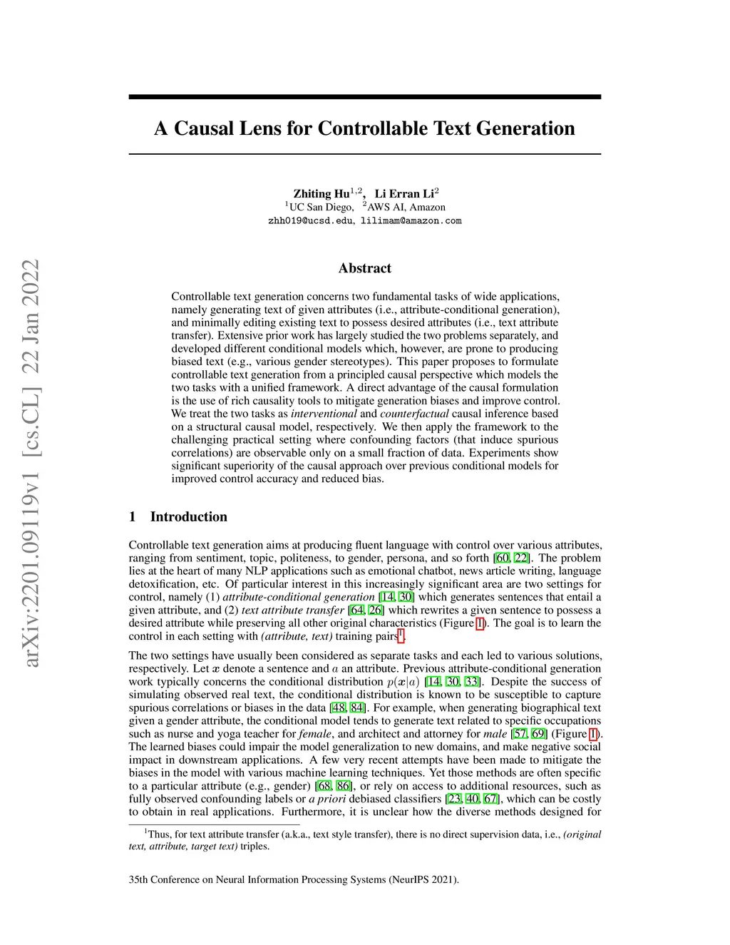 A Causal Lens for Controllable Text Generation