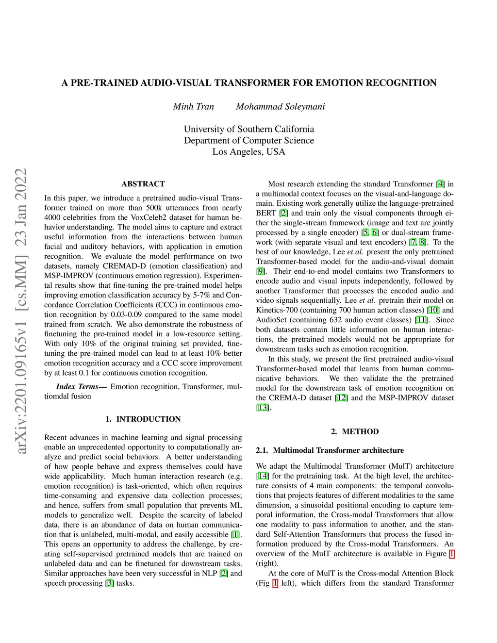 A Pre-trained Audio-Visual Transformer for Emotion Recognition