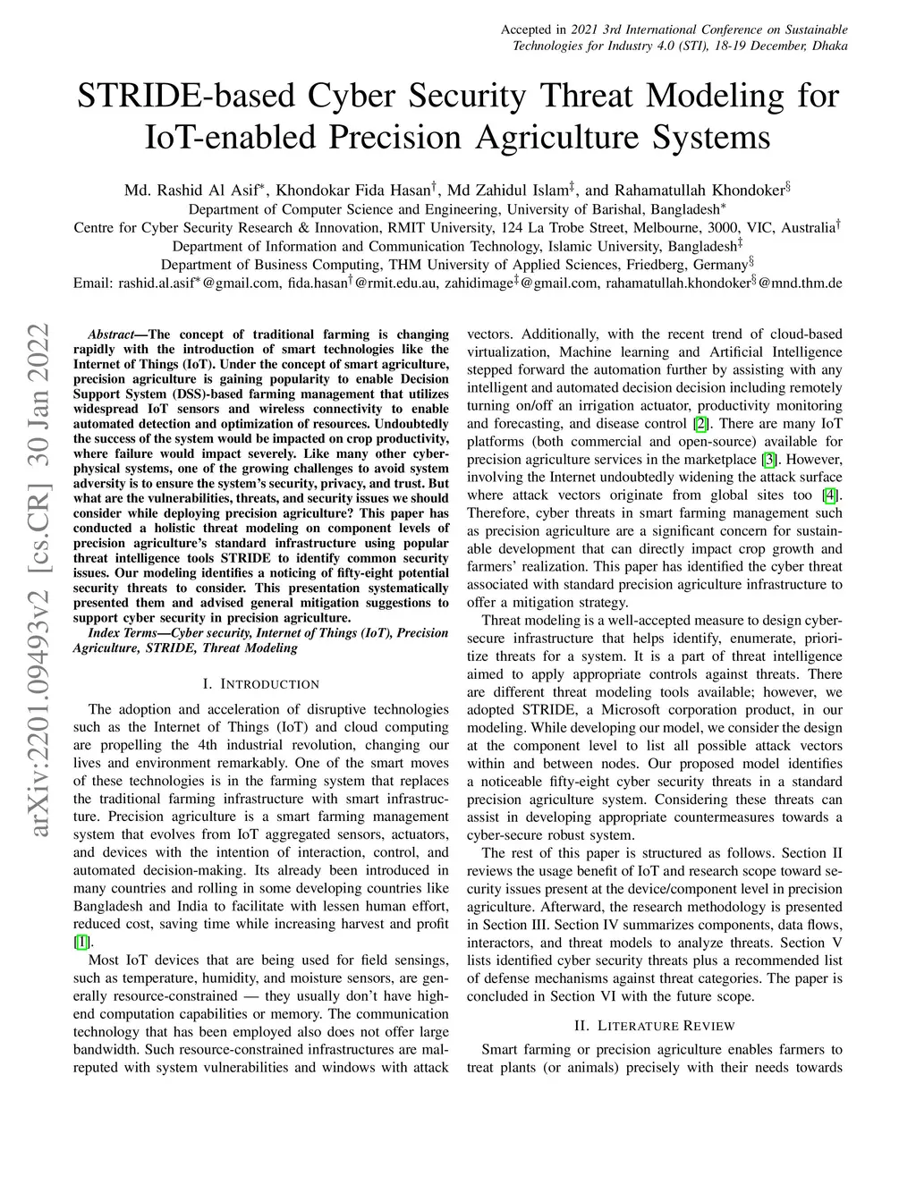 STRIDE-based Cyber Security Threat Modeling for IoT-enabled Precision