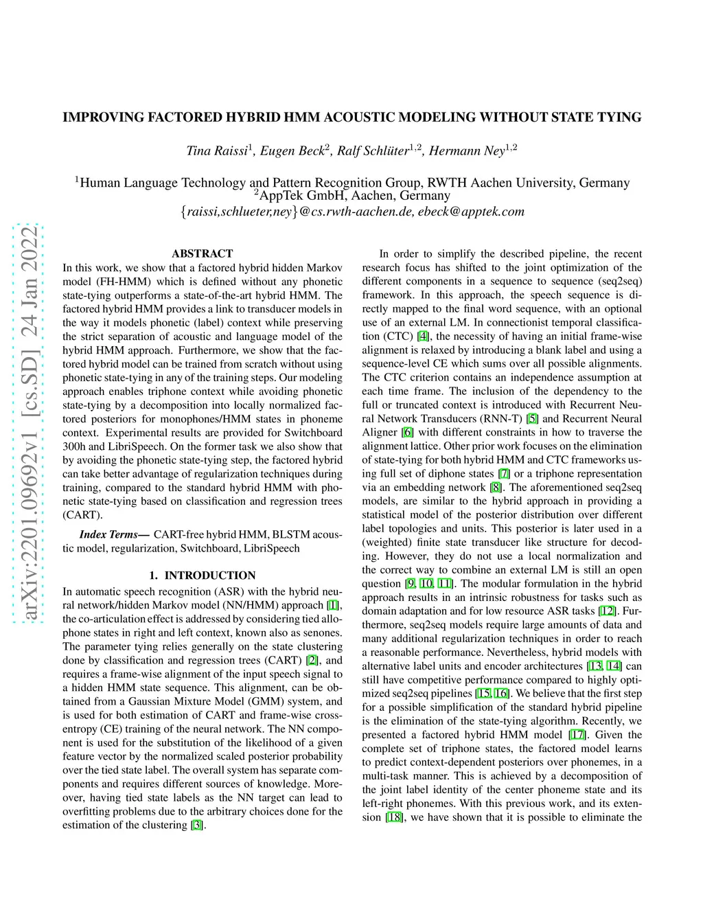 Improving Factored Hybrid HMM Acoustic Modeling without State Tying