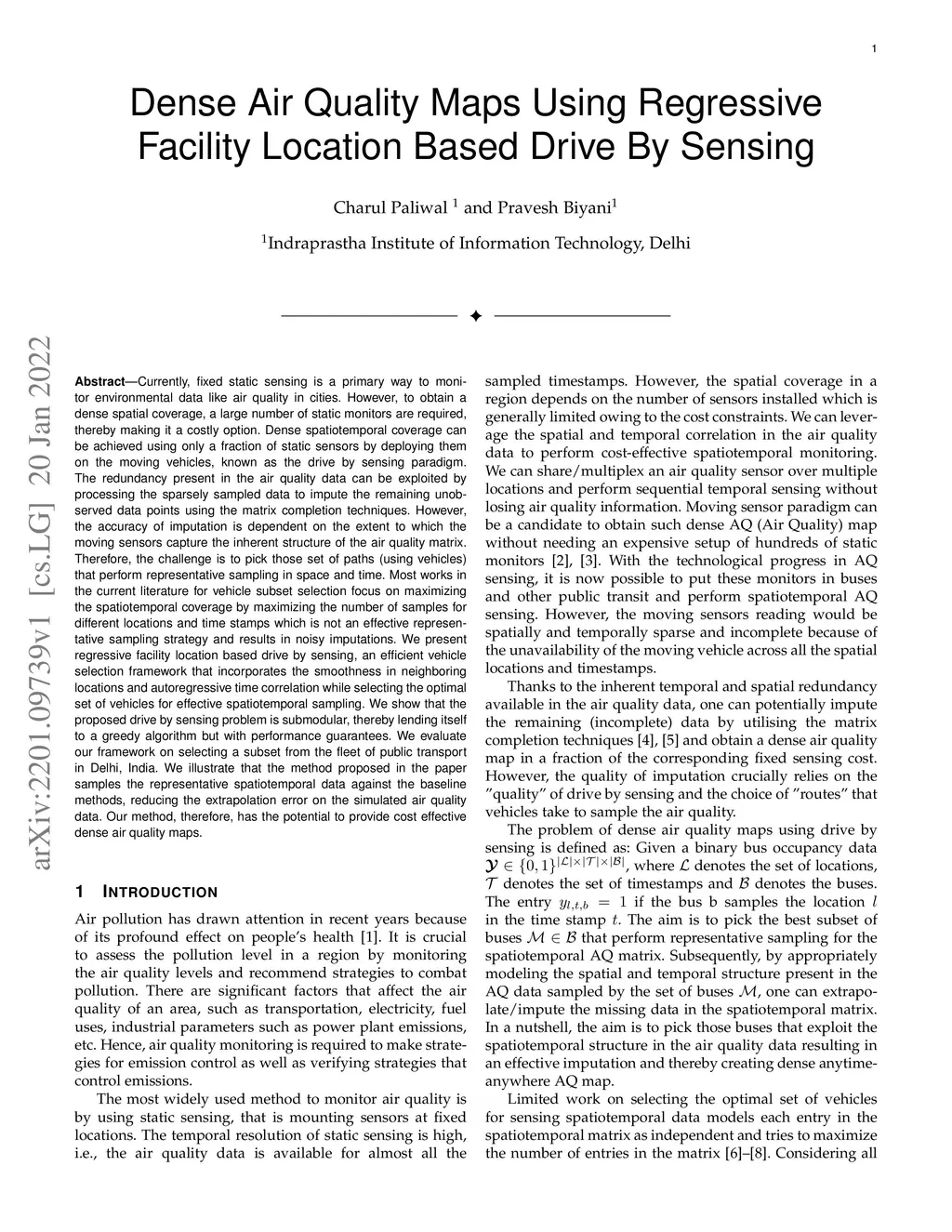 Dense Air Quality Maps Using Regressive Facility Location Based Drive By