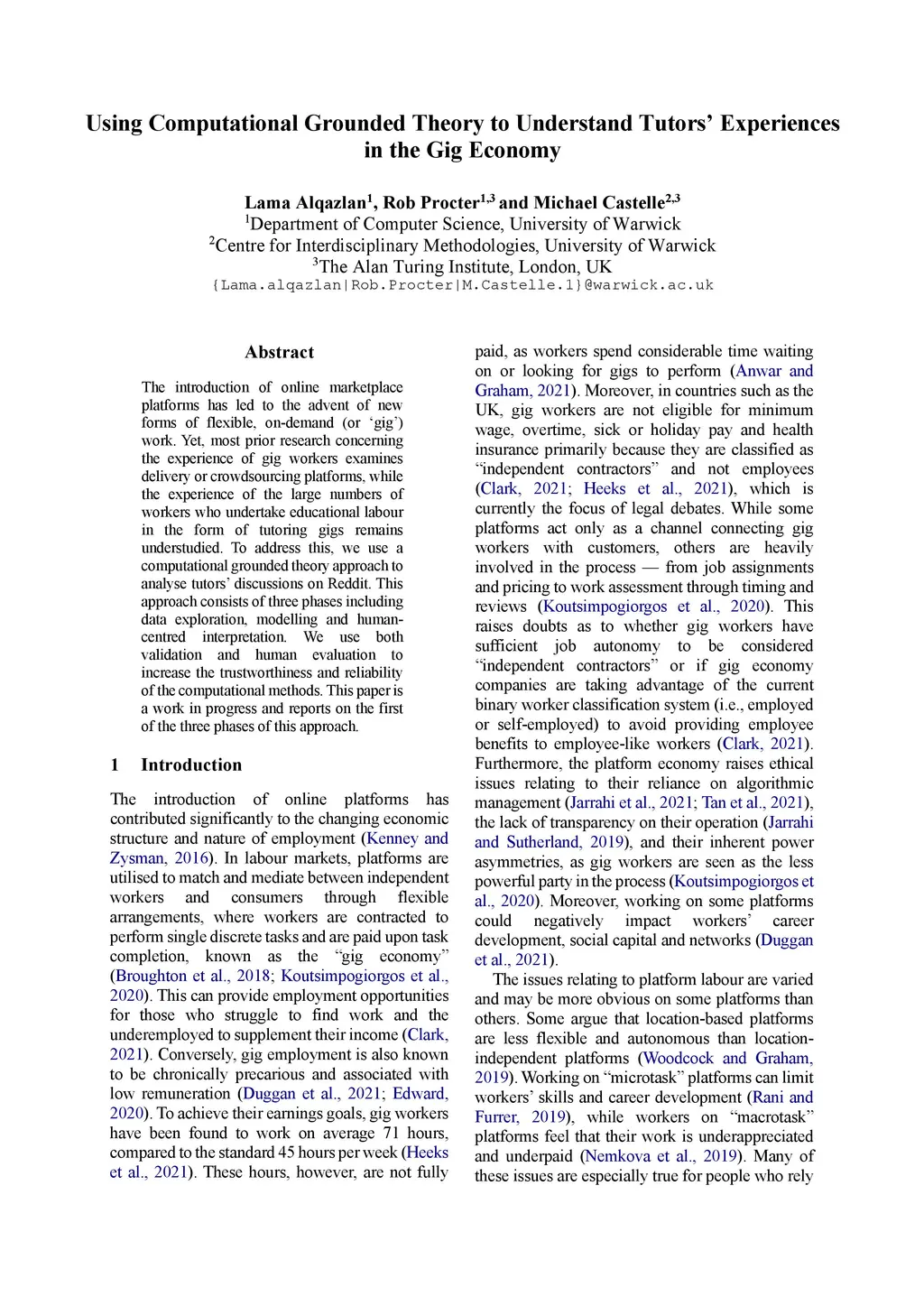The introduction of online marketplace platforms has led to the advent of new forms of flexible, on-demand (or 'gig') work. Yet, most prior research concerning the experience of gig workers examines delivery or crowdsourcing platforms, while the experience of the large numbers of workers who undertake educational labour in the form of tutoring gigs remains understudied. To address this, we use a computational grounded theory approach to analyse tutors' discussions on Reddit. This approach consists of three phases including data exploration, modelling and human-centred interpretation. We use both validation and human evaluation to increase the trustworthiness and reliability of the computational methods. This paper is a work in progress and reports on the first of the three phases of this approach.