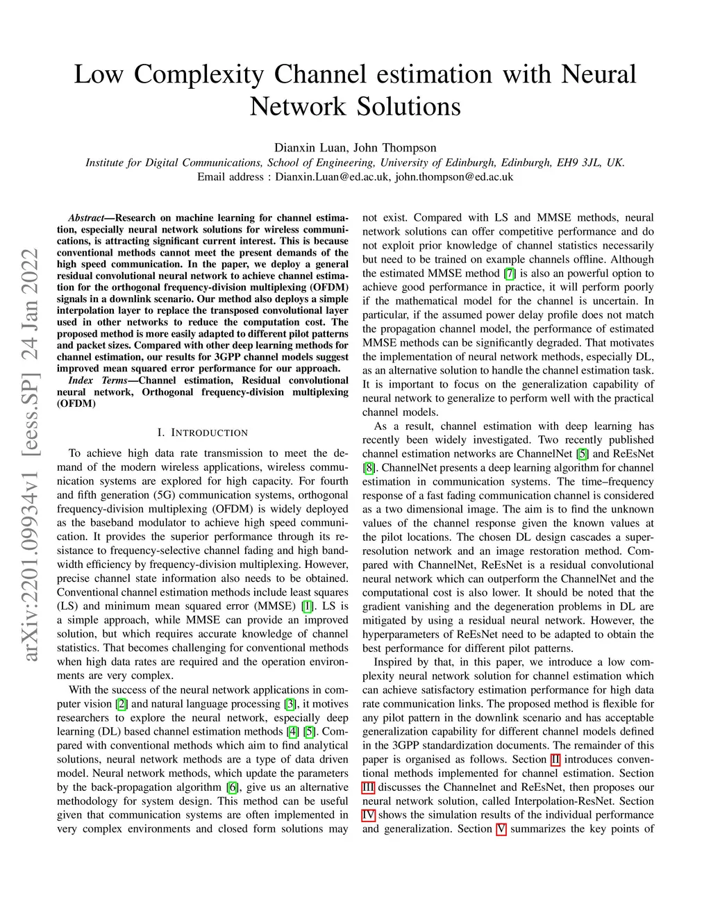 Research on machine learning for channel estimation, especially neural network solutions for wireless communications, is attracting significant current interest. This is because conventional methods cannot meet the present demands of the high speed communication. In the paper, we deploy a general residual convolutional neural network to achieve channel estimation for the orthogonal frequency-division multiplexing (OFDM) signals in a downlink scenario. Our method also deploys a simple interpolation layer to replace the transposed convolutional layer used in other networks to reduce the computation cost. The proposed method is more easily adapted to different pilot patterns and packet sizes. Compared with other deep learning methods for channel estimation, our results for 3GPP channel models suggest improved mean squared error performance for our approach.