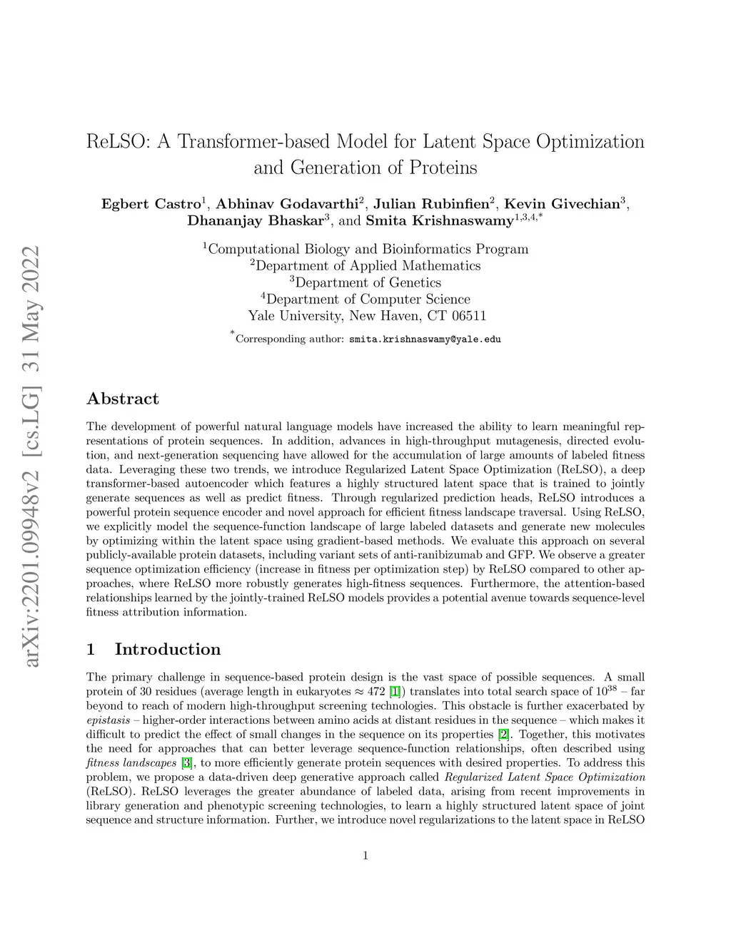 ReLSO: A Transformer-based Model for Latent Space Optimization and