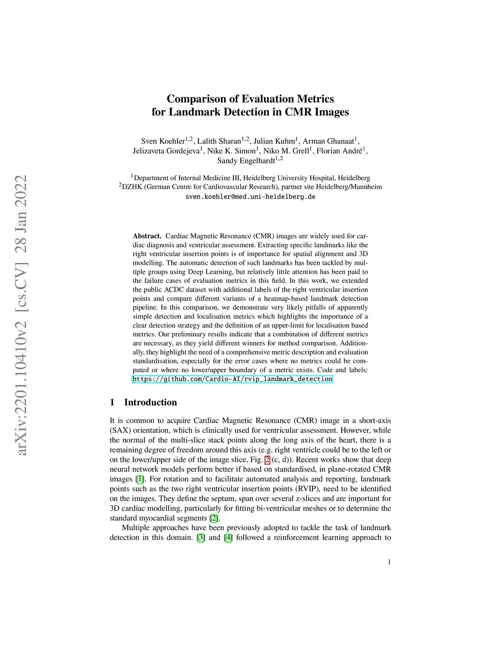 Comparison of Evaluation Metrics for Landmark Detection in CMR Images