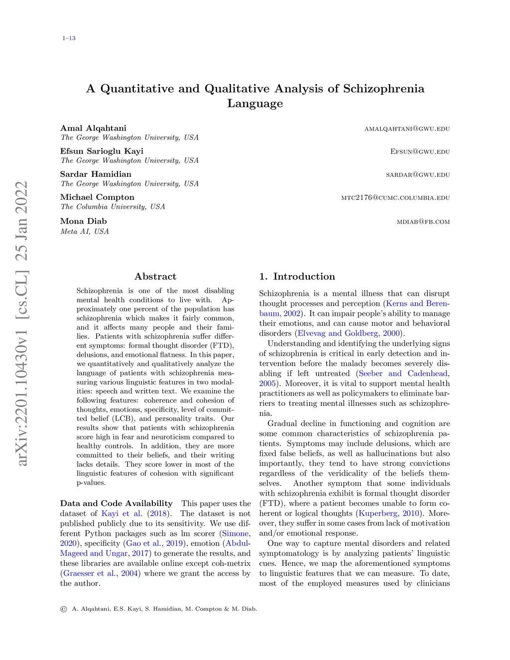 A Quantitative and Qualitative Analysis of Schizophrenia Language