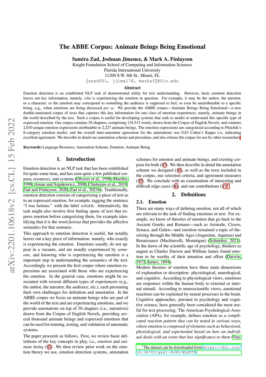 The ABBE Corpus: Animate Beings Being Emotional