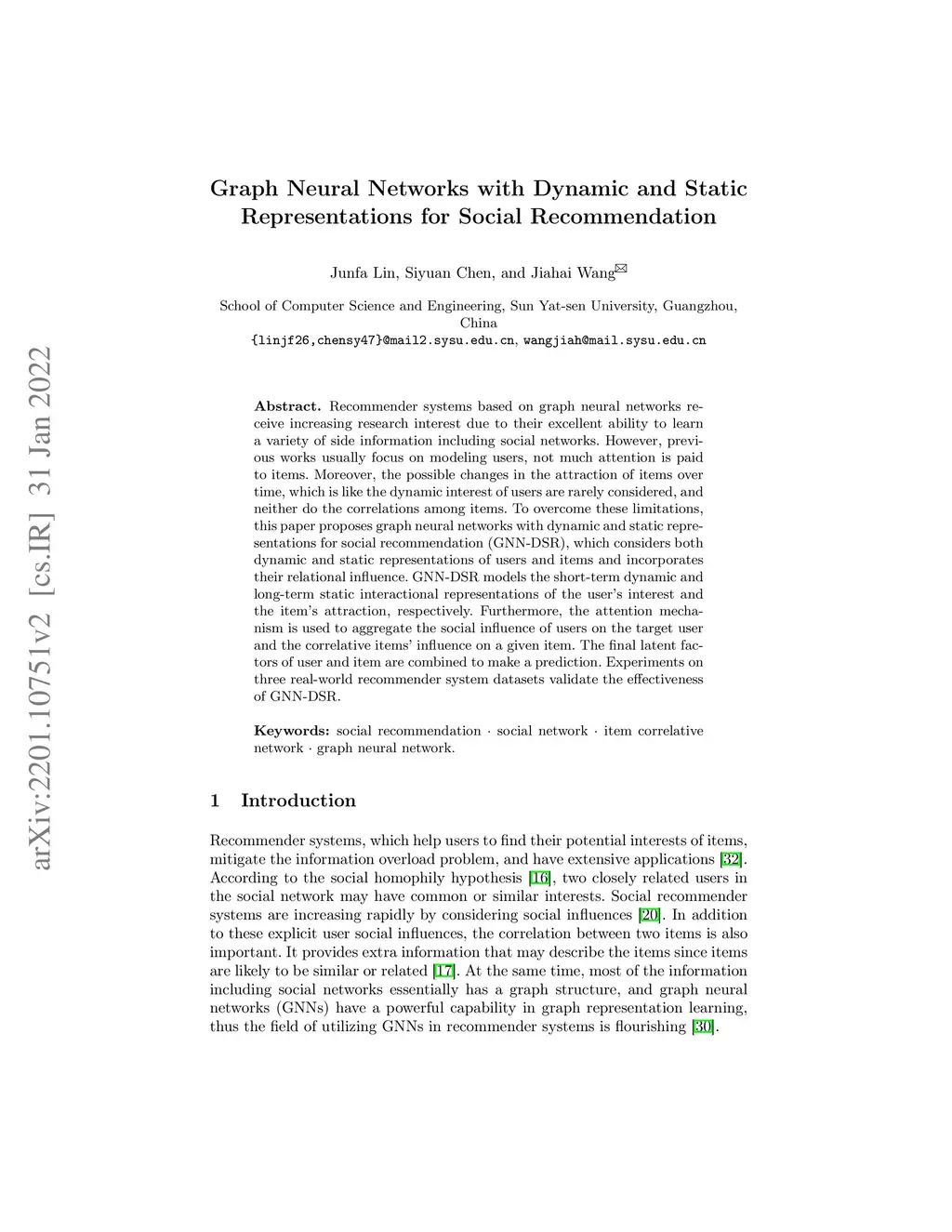 Graph Neural Networks with Dynamic and Static Representations for Social