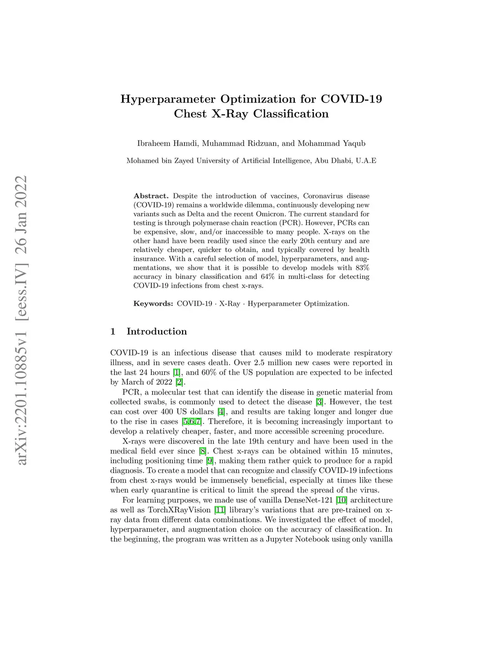 Hyperparameter Optimization for COVID-19 Chest X-Ray Classification