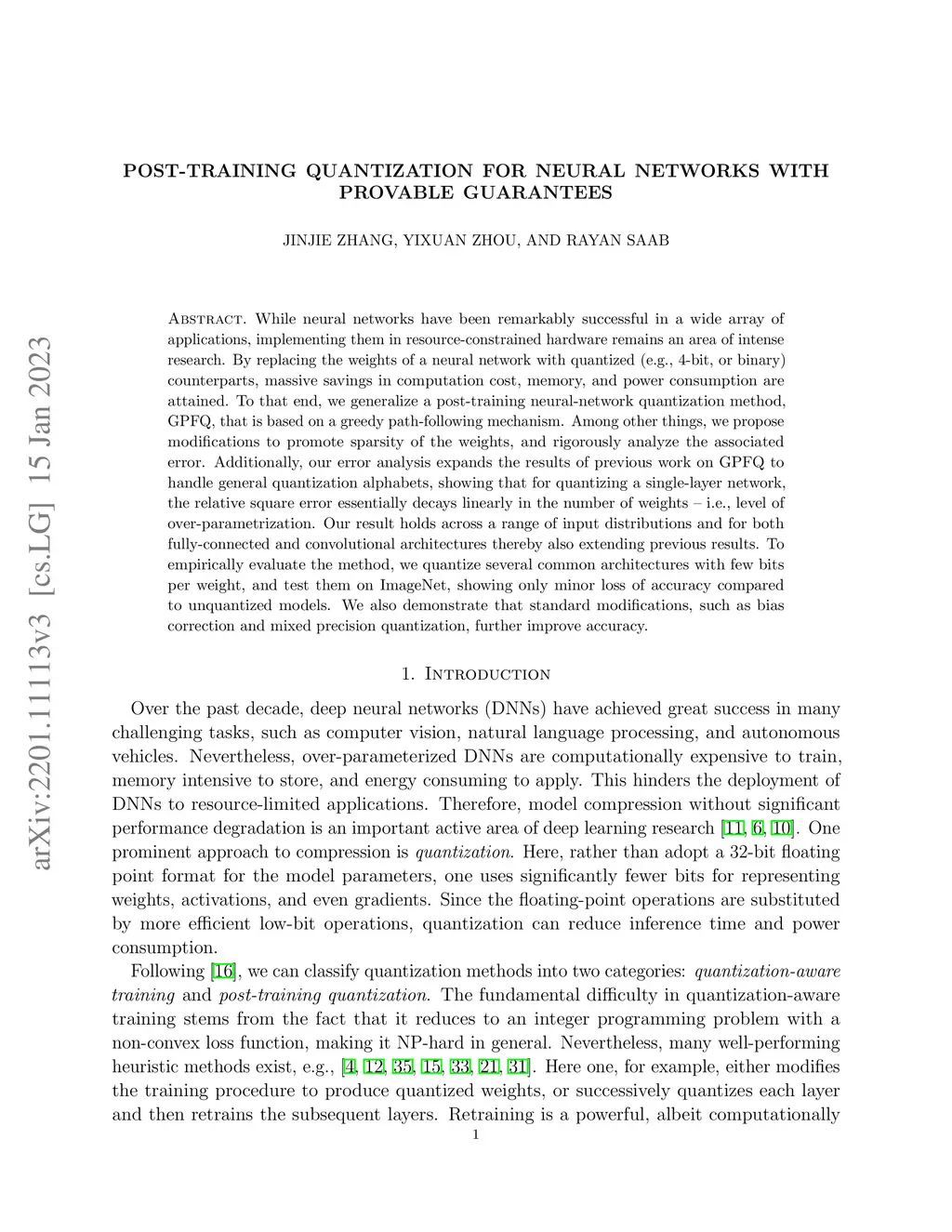 Post-training Quantization for Neural Networks with Provable Guarantees