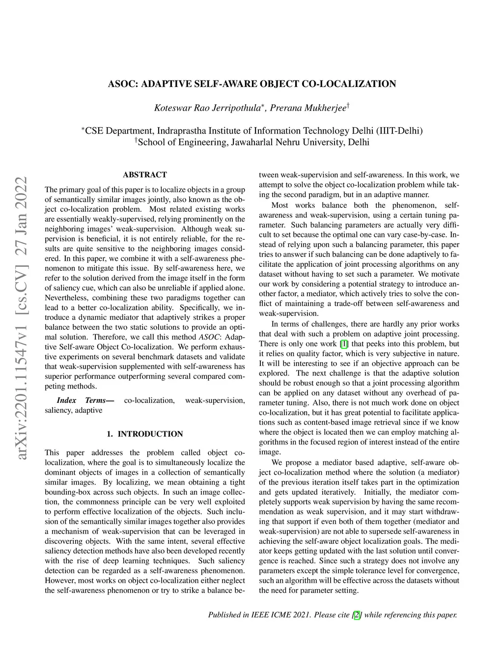 ASOC: Adaptive Self-aware Object Co-localization