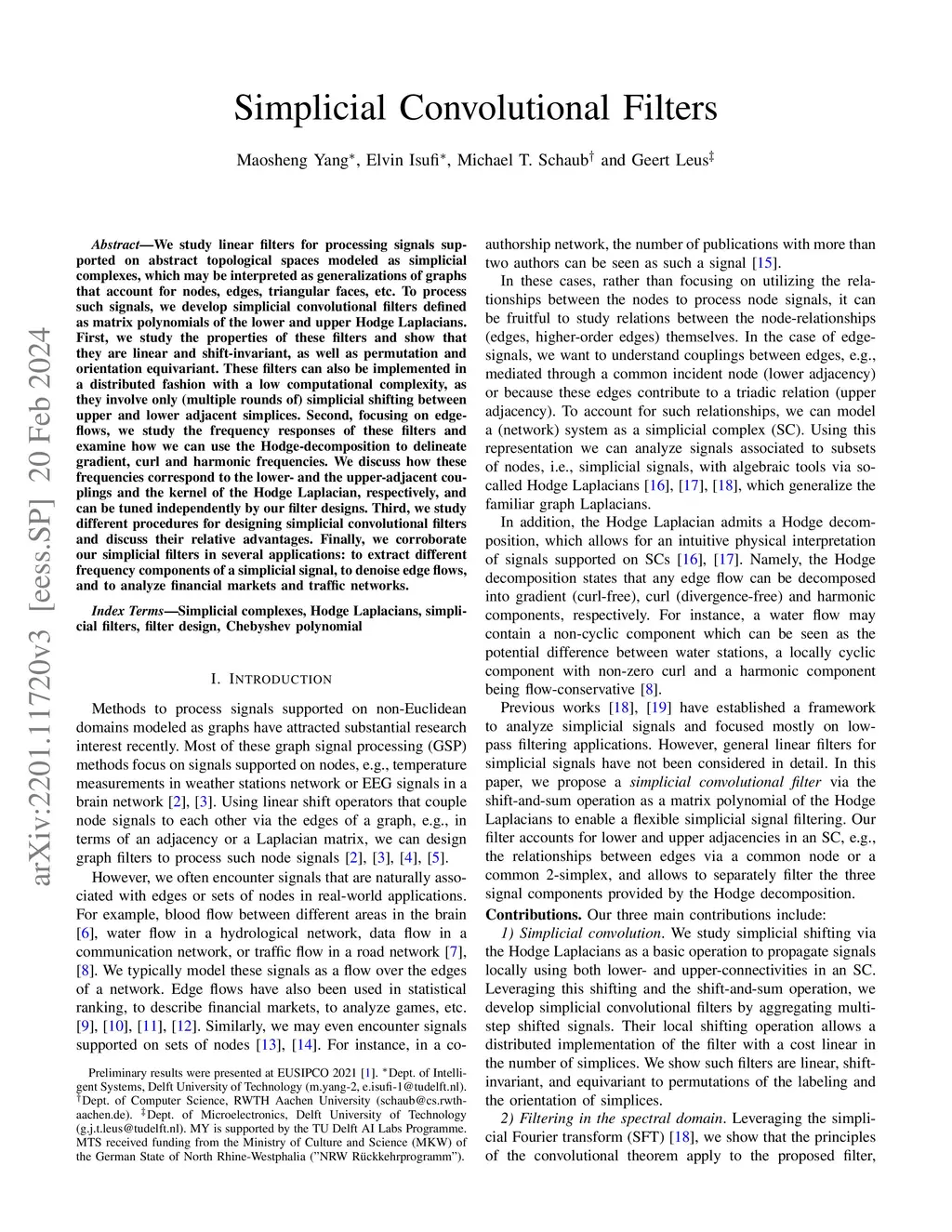 Simplicial Convolutional Filters