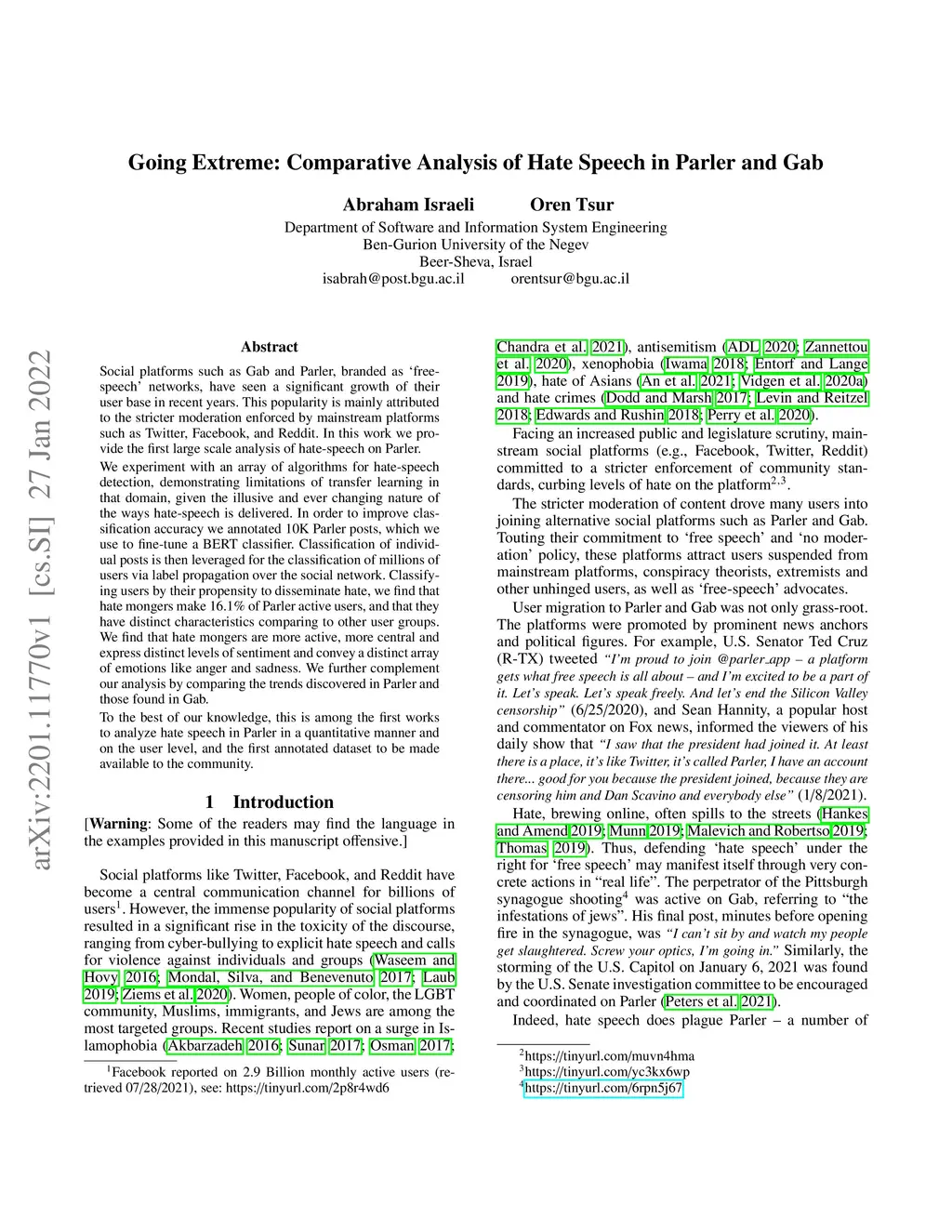 Going Extreme: Comparative Analysis of Hate Speech in Parler and Gab
