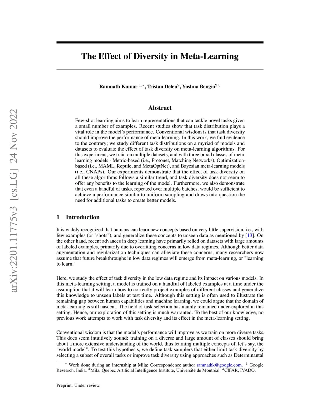Recent studies show that task distribution plays a vital role in the meta-learner's performance. Conventional wisdom is that task diversity should improve the performance of meta-learning. In this work, we find evidence to the contrary; (i) our experiments draw into question the efficacy of our learned models: similar manifolds can be learned with a subset of the data (lower task diversity). This finding questions the advantage of providing more data to the model, and (ii) adding diversity to the task distribution (higher task diversity) sometimes hinders the model and does not lead to a significant improvement in performance as previously believed. To strengthen our findings, we provide both empirical and theoretical evidence.