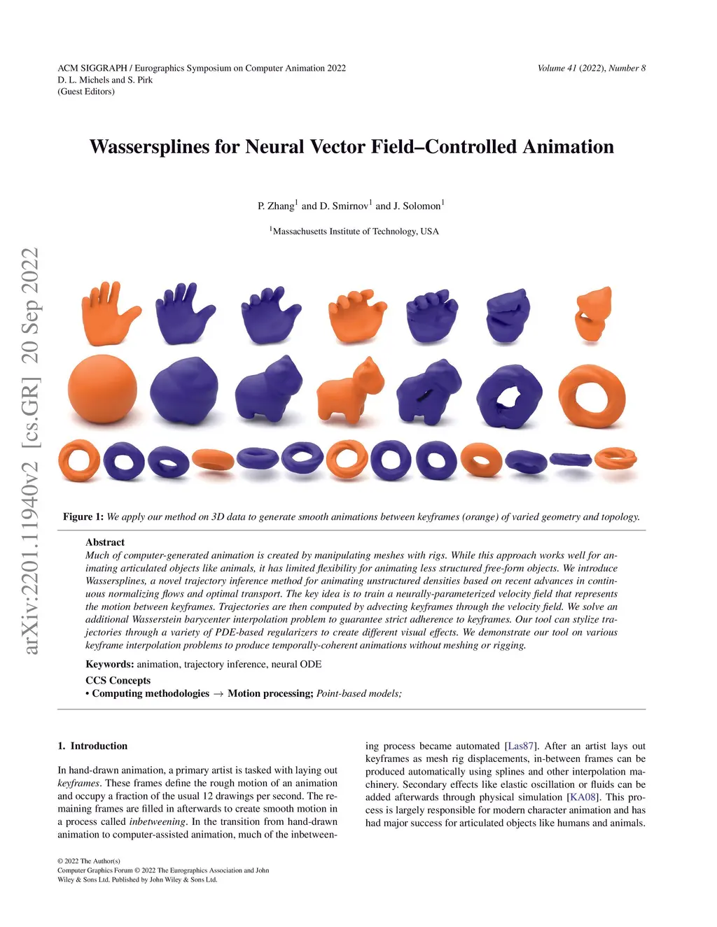 Wassersplines for Neural Vector Field--Controlled Animation