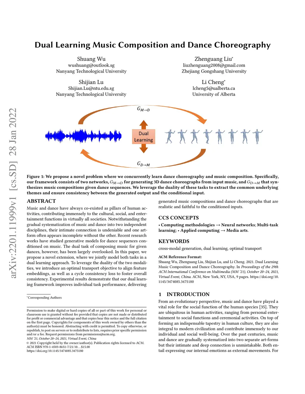 Dual Learning Music Composition and Dance Choreography