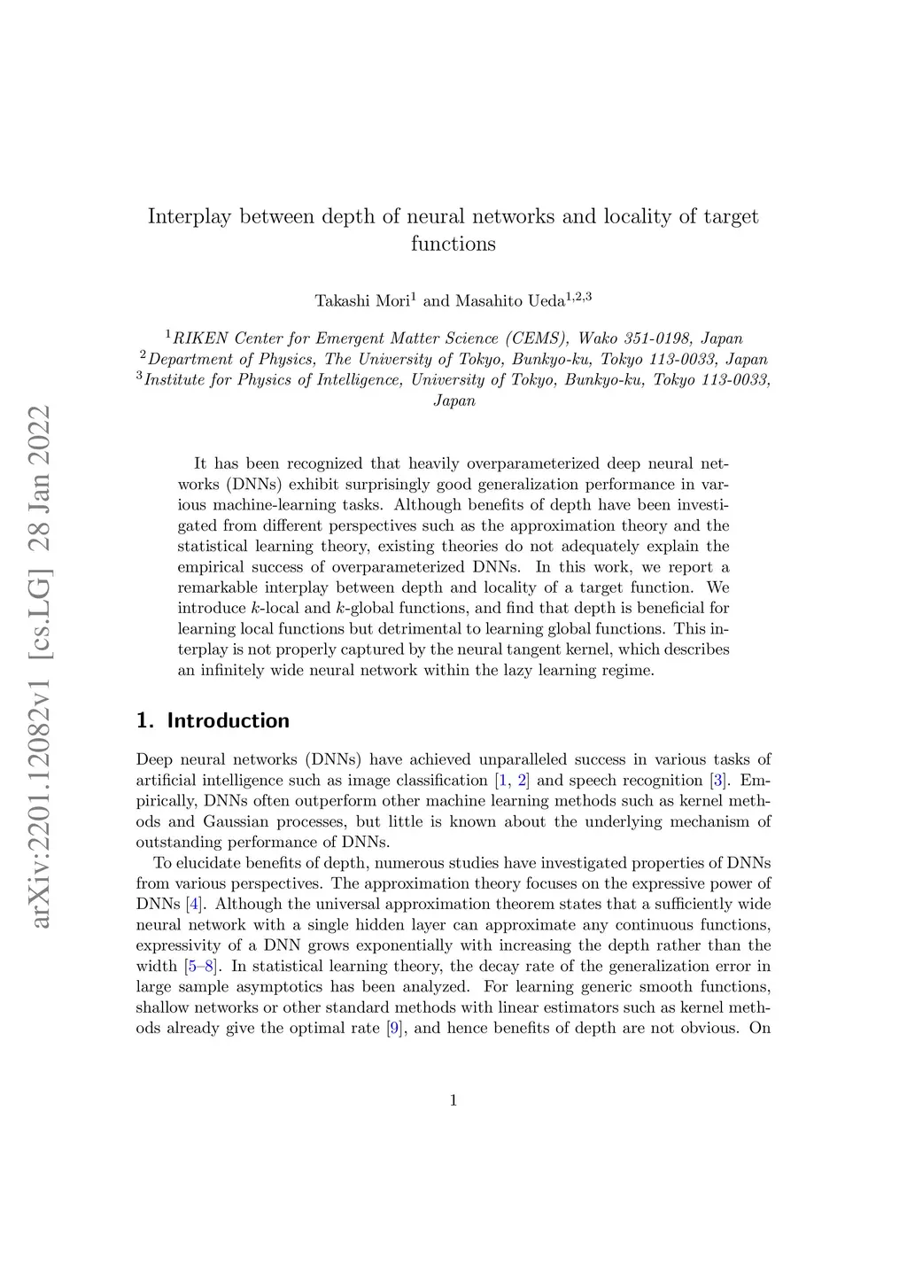 Interplay between depth of neural networks and locality of target